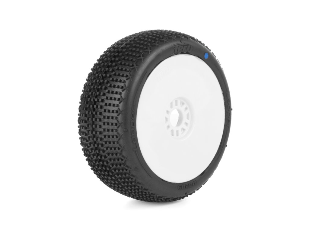 Naše pneumatiky TPRO jsou k dispozici ve 2 různých typech. Jednak jako nelepené pneumatiky v sadě po 4 kusech, nebo jako hotové lepené pneumatiky v páru po 2 kusech. U lepených kol se používá naše modrá vložka TPRO ve střední barvě (TP1309I3) a bílé disky v měkké verzi (TP100011SWH).