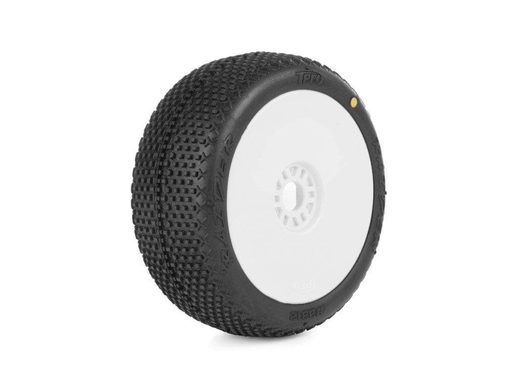 Naše pneumatiky TPRO jsou k dispozici ve 2 různých typech. Jednak jako nelepené pneumatiky v sadě po 4 kusech, nebo jako hotové lepené pneumatiky v páru po 2 kusech. U lepených kol se používá naše modrá vložka TPRO ve střední barvě (TP1309I3) a bílé disky v měkké verzi (TP100011SWH).
