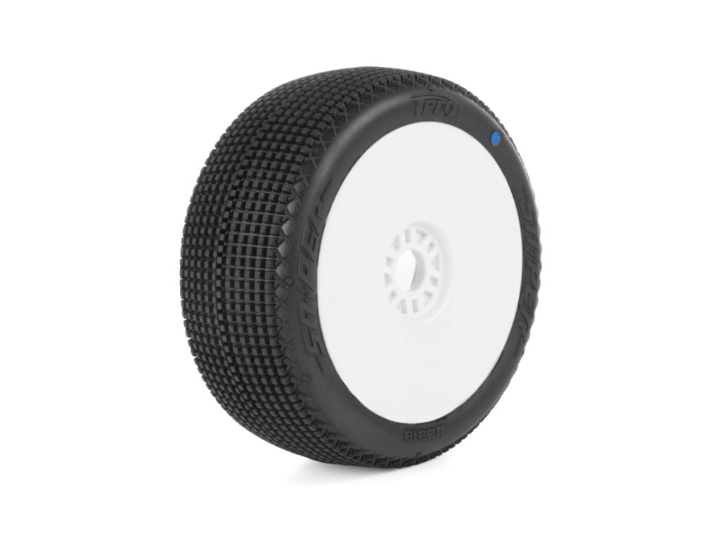 Naše pneumatiky TPRO jsou k dispozici ve 2 různých typech. Jednak jako nelepené pneumatiky v sadě po 4 kusech, nebo jako hotové lepené pneumatiky v páru po 2 kusech. U lepených kol se používá naše modrá vložka TPRO ve střední barvě (TP1309I3) a bílé disky v měkké verzi (TP100011SWH).