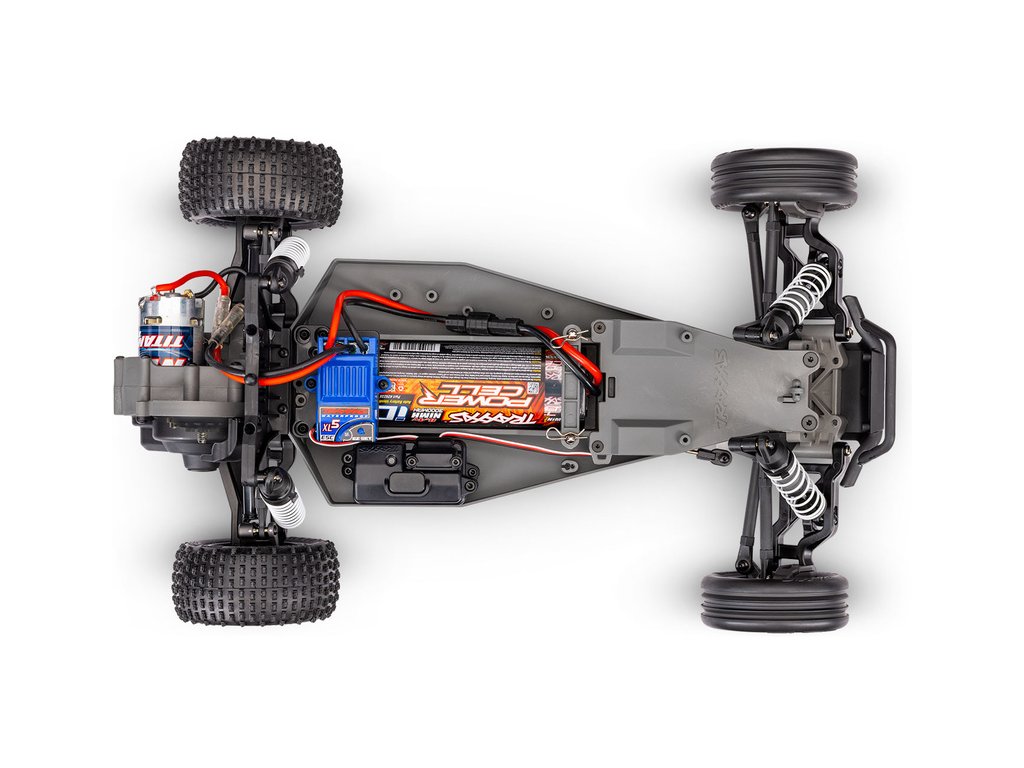 Model je řízen dvoukanálovou proporcionální volantovou RC vysílačkou Traxxas TQ, pracující v pásmu 2.4 GHz - provoz bez rušení. Vysílač je napájen pouze 4 AA články.