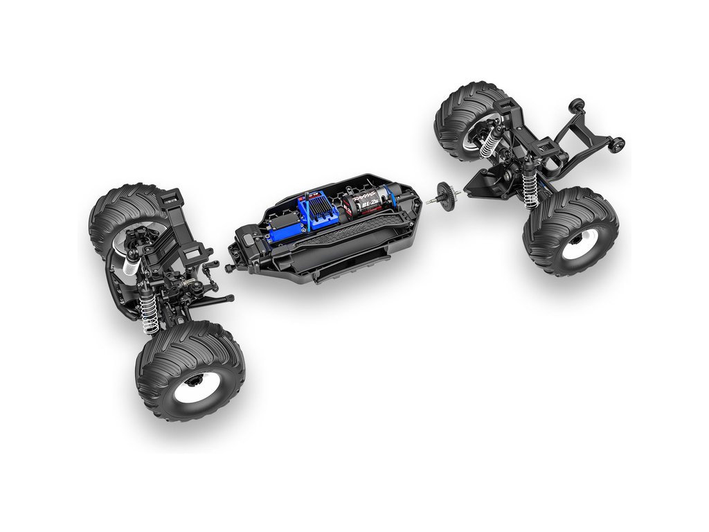 Dvě nejznámější jména ve světe RC monster trucků spojily své síly a vytvořily BIGFOOT 4x4, který je založený na nejnovějším šasi Stampede. Šasi zachovává to nejlepší včetně modulární konstrukce, špičkové geometrie zavěšení, pohonného ústrojí s třecí spojkou, nápravových diferenciálů a navíc přidává továrně instalované kolečka Wheelie. Pro vyšší stabilitu byl prodloužen rozvor na 295 mm a do přihrádky baterie lze nově vložit ploché 7 čl. akumulátory NiMH, jako u ostatních modelů Traxxas. Díky náhonu 4WD a střídavému pohonu zažijete nespočet hodin perfektní ovladatelnosti a bleskové akcelerace.