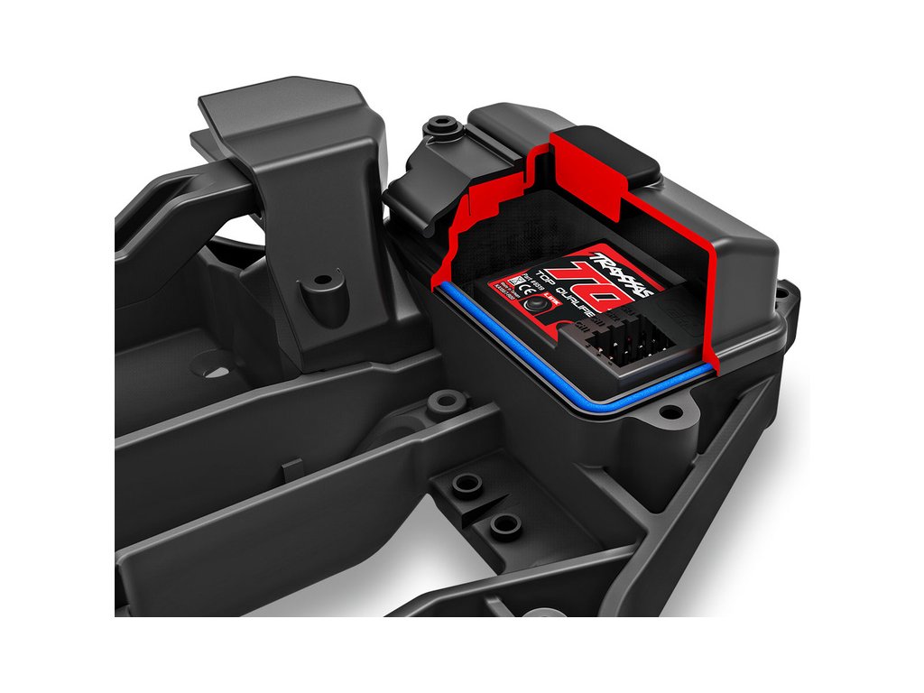 Tří-kanálový přijímač Traxxas TQ 2.4 GHz, zajišťuje bezpečné řízení bez výpadků. Snadné spárování jedním tlačítkem. Indikace stavu pomocí LED diody.