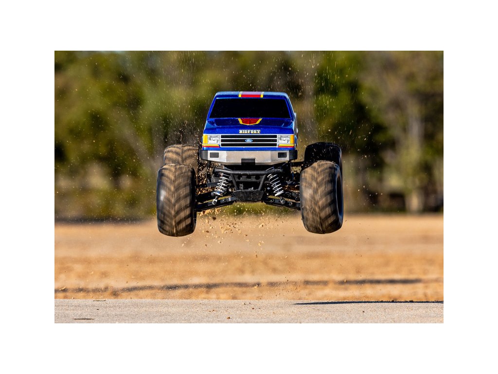 RC model auta Bigfoot 1:10 BL-2s 4WD Classic je vytvořen podle skutečných Monster Trucků. S delším rozvorem pro stabilitu a střední světlou výškou 62 mm překoná překážky jako žádné jiné auto. Dostatek výkonu mu k tomu dodává střídavý motor s regulátorem BL-2S. Střídavý pohonný systém přináší brutálnější akceleraci, dlouhou životnost a zvýšení rychlosti modelu až na 56 km/h. Navíc je model továrně vybaven sadou Extreme Heavy Duty pro vysokou odolnost. Jízdu po zadních kolech umožňují kolečka Wheelie. To vše je zabaleno do praktické karoserie s bezsponkovým uchycením.
