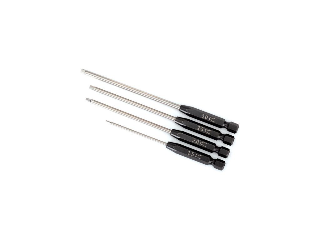 Náhradní dříky do Traxxas šroubováku s ručkou Premium nebo do akušroubováků, s koncovkou imbus 1.5 mm, 2.0mm, 2.5mm a 3.0mm. Dříky jsou vyrobeny z kvalitní HSS oceli.