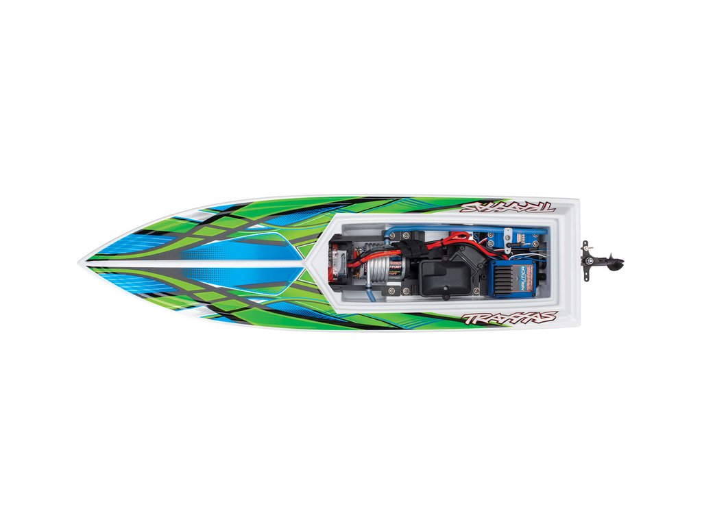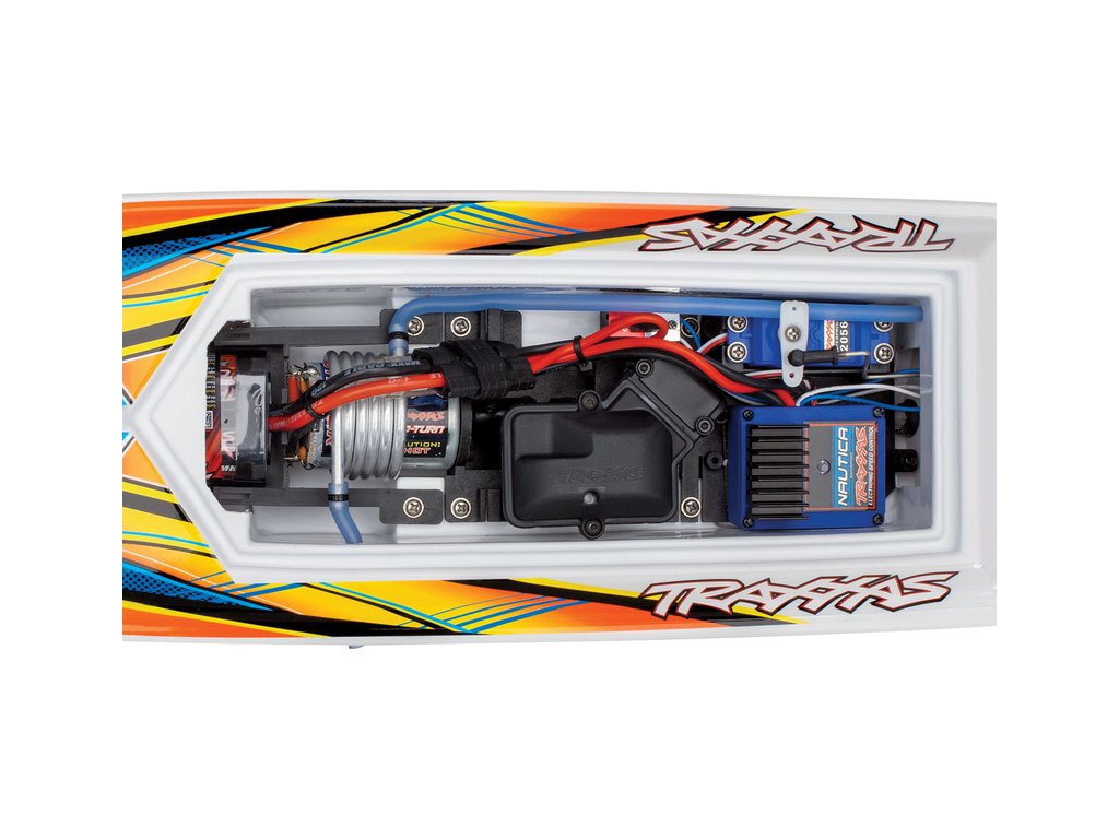 RC model Traxxas Blast RTR s vodou chlazeným stejnosměrným motorem a voděodolným regulátorem Nautica. RC souprava Traxxas TQ s 3 kan. přijímačem, který je uložen ve voděodolné krabičce. Model je sestaven a připraven k jízdě. NiMH akumulátor a USB-C nabíječ v balení.