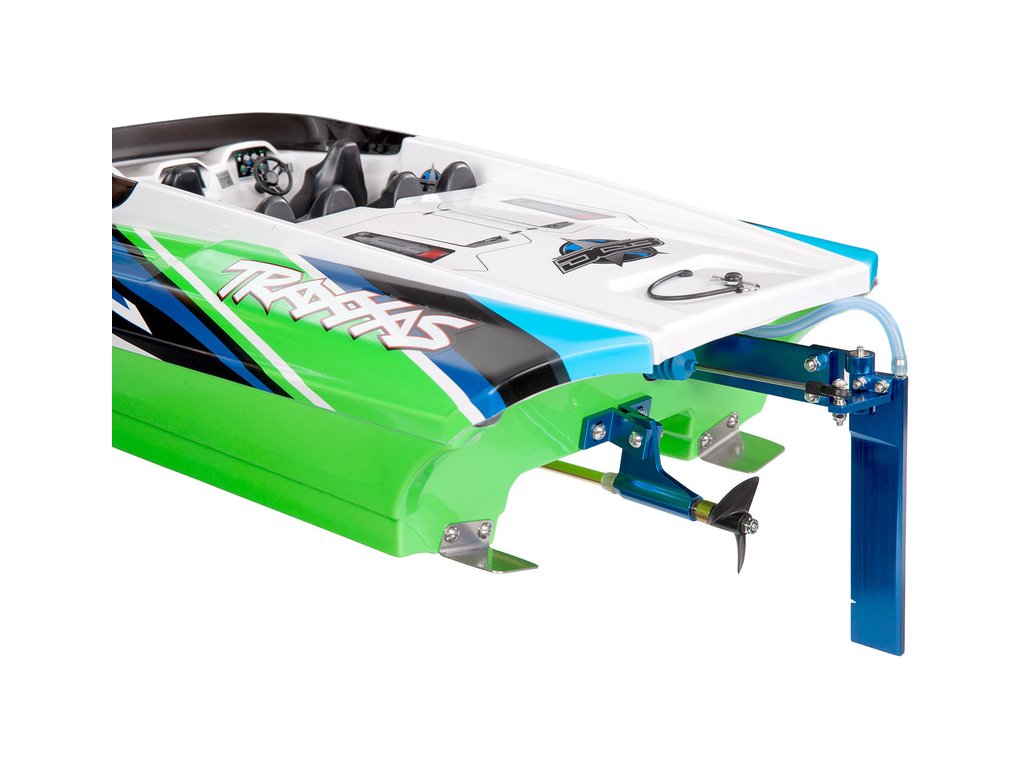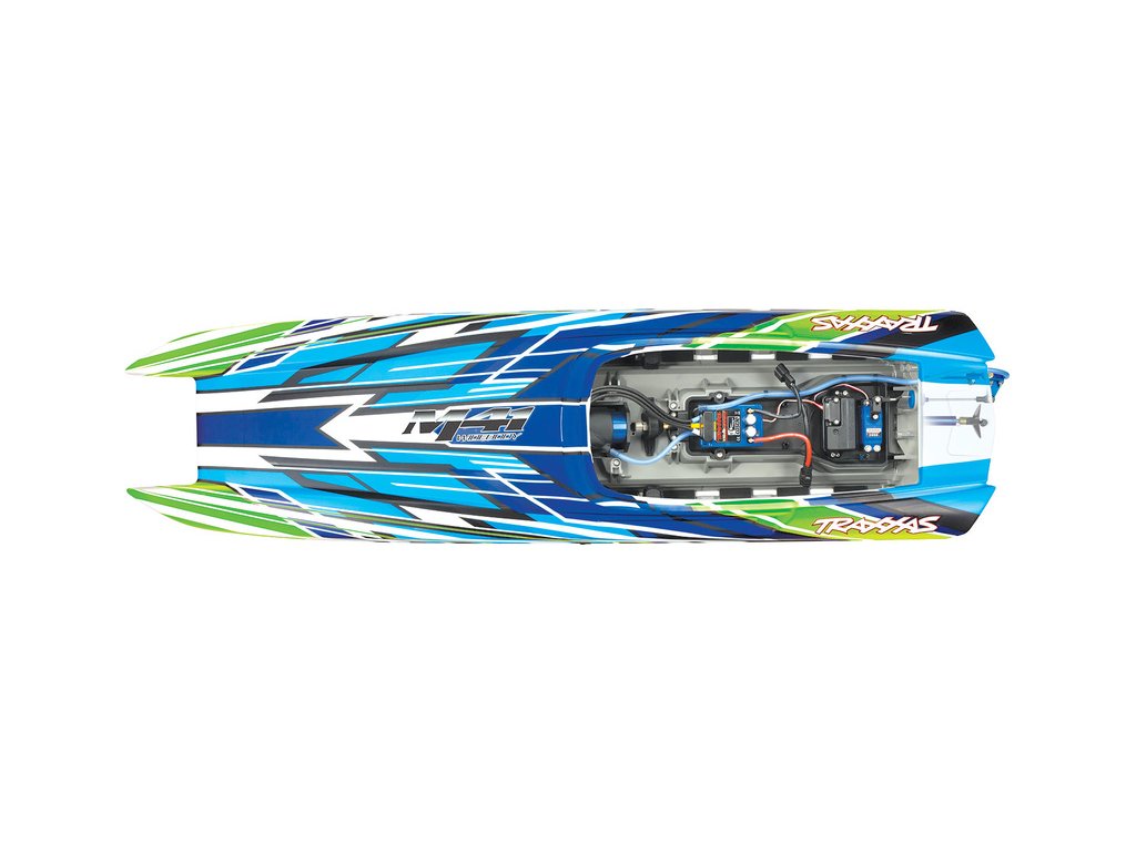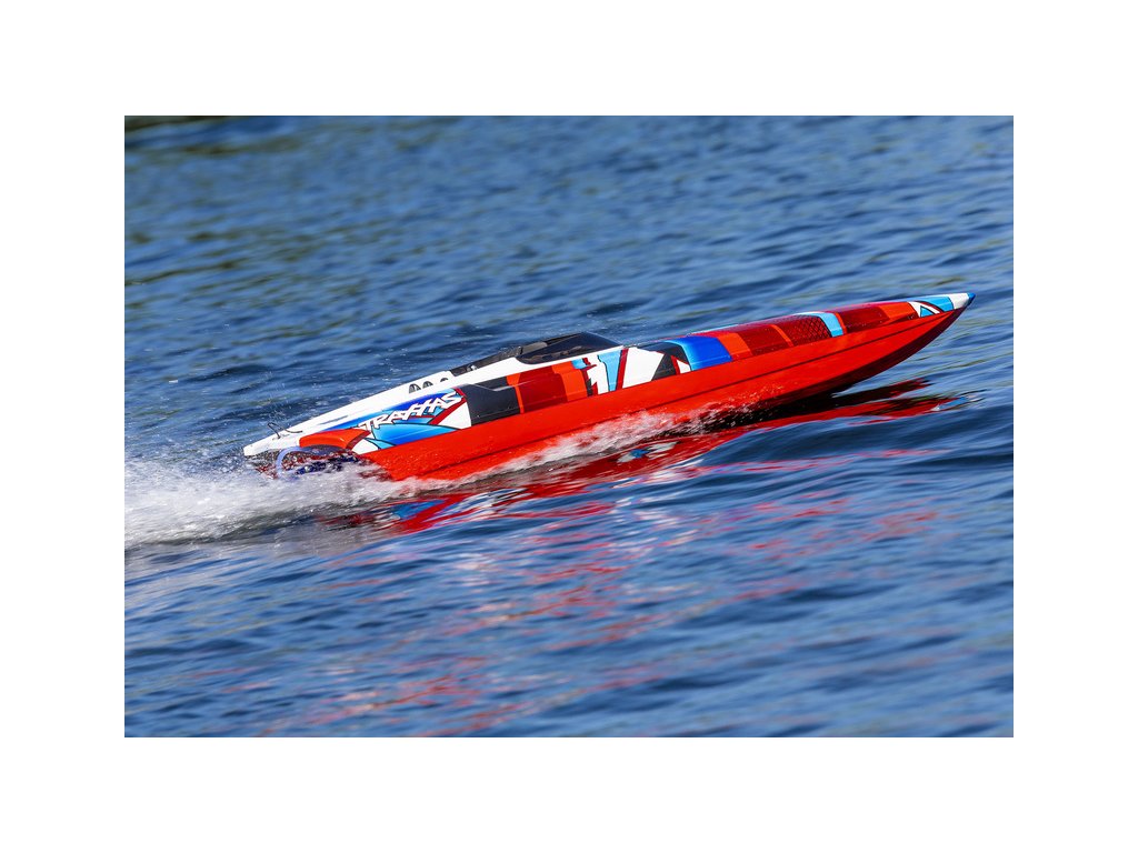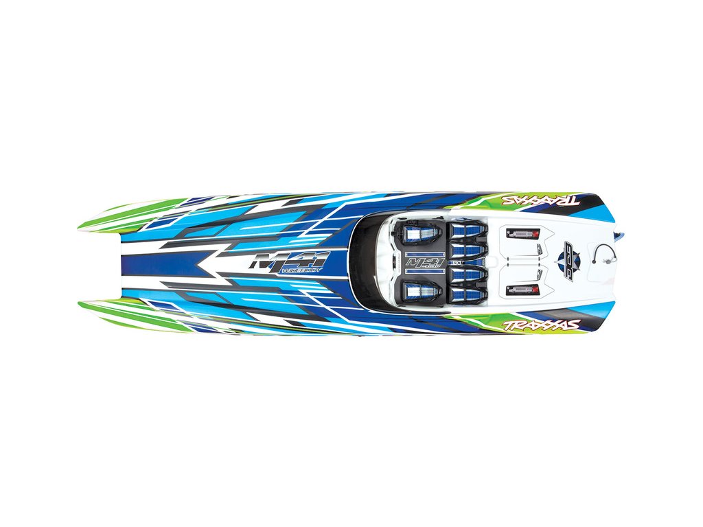Skutečný závodní člun DCB M41, vyráběný firmou Dave´s Custom Boats, dosahuje rychlosti přes 250 km/h, je poháněn benzinovým motorem až o výkonu 1550 koní. Traxxas pro Vás připravil dálkově řízený model lodi, který Vás rozhodně nezklame. Délka trupu je 105 cm, samozřejmostí je stabilizace Traxxas TSM, RC souprava Traxxas TQi a osvědčený pohon. Pro zprovoznění potřebujete pouze pohonné baterie a nabíječ.