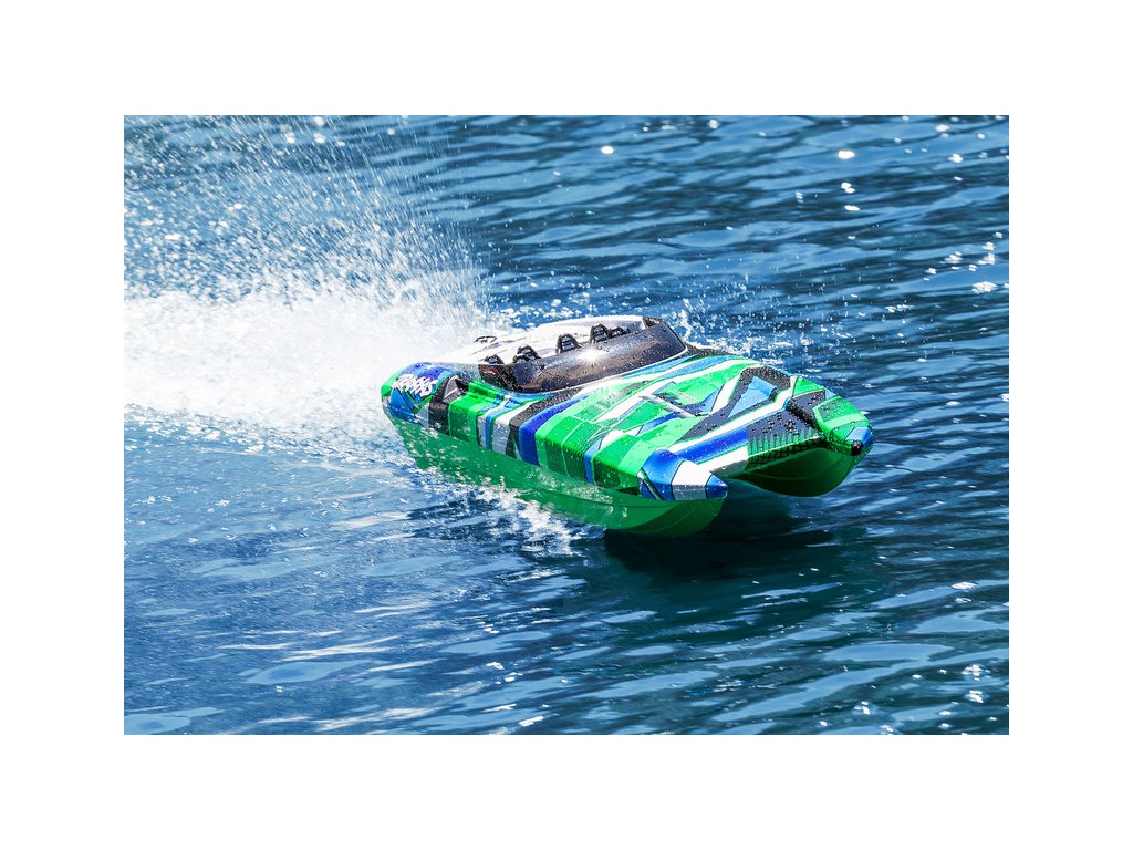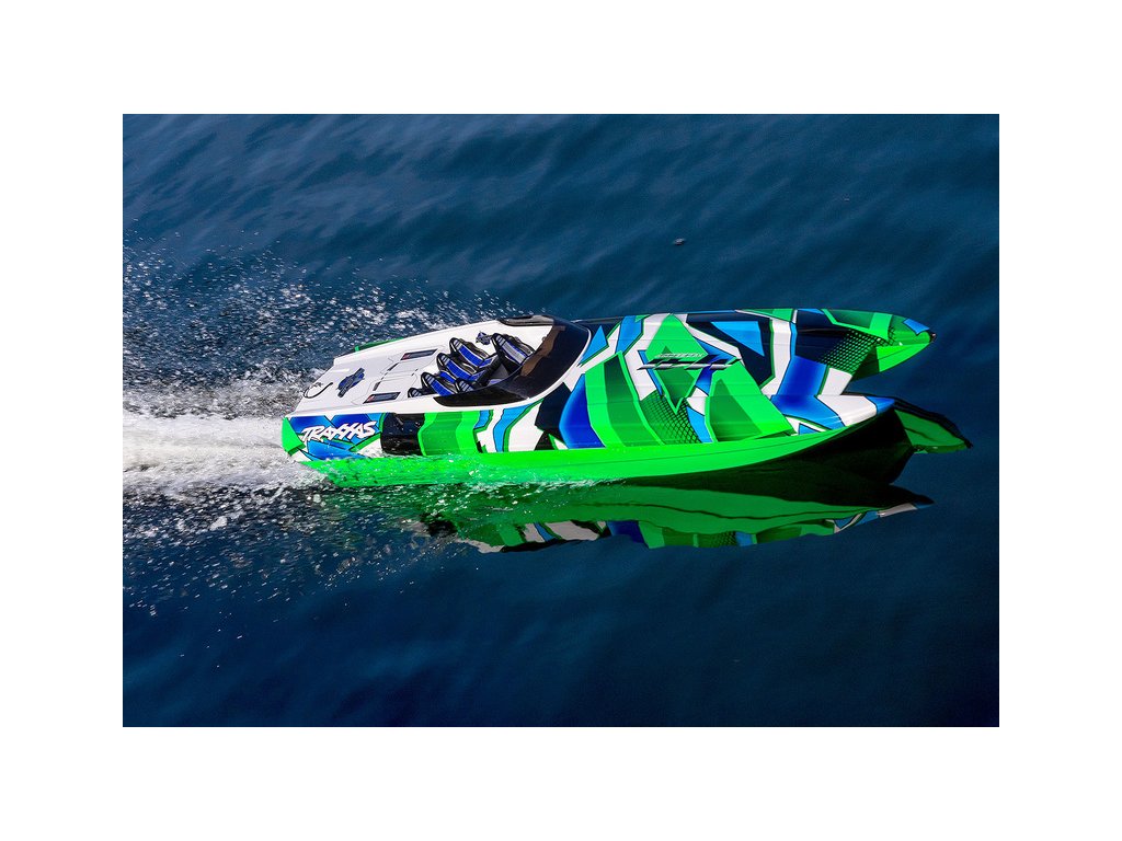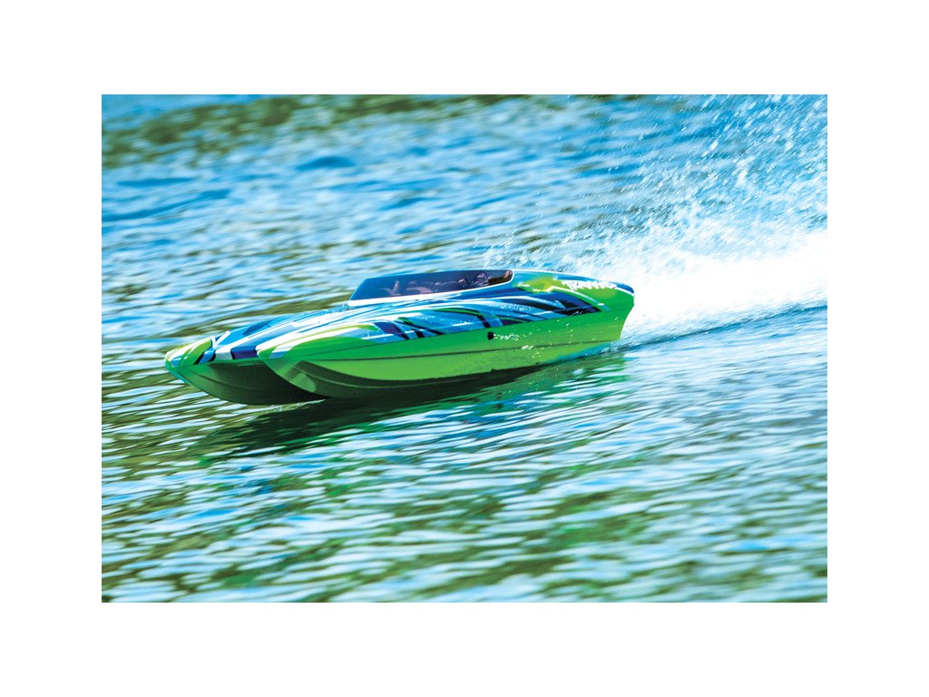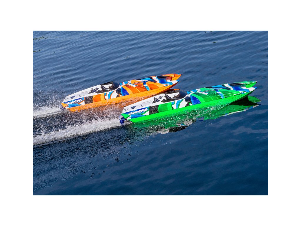 Skutečný závodní člun DCB M41, vyráběný firmou Dave´s Custom Boats, dosahuje rychlosti přes 250 km/h, je poháněn benzinovým motorem až o výkonu 1550 koní. Traxxas pro Vás připravil dálkově řízený model lodi, který Vás rozhodně nezklame. Délka trupu je 105 cm, samozřejmostí je stabilizace Traxxas TSM, RC souprava Traxxas TQi a osvědčený pohon. Pro zprovoznění potřebujete pouze pohonné baterie a nabíječ.