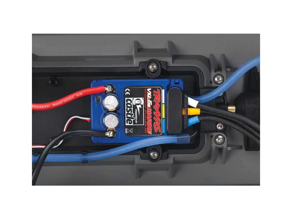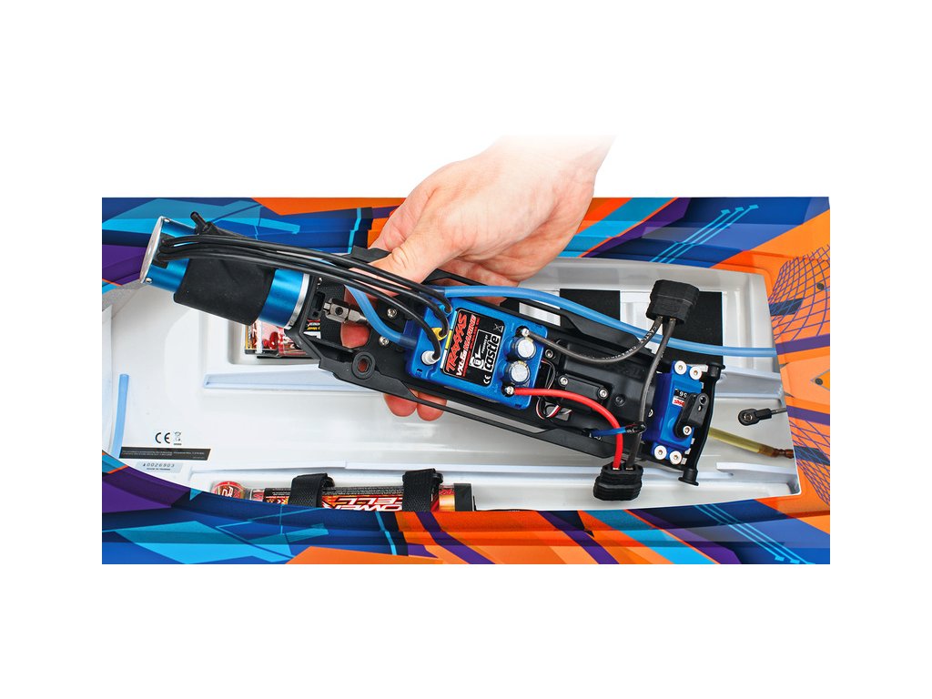 - Volatvová RC souprava Traxxas TQi 2.4 GHz s přijímačem se stabilizací TSM (Traxxas Stability Management) pro bezpečné řízení lodi