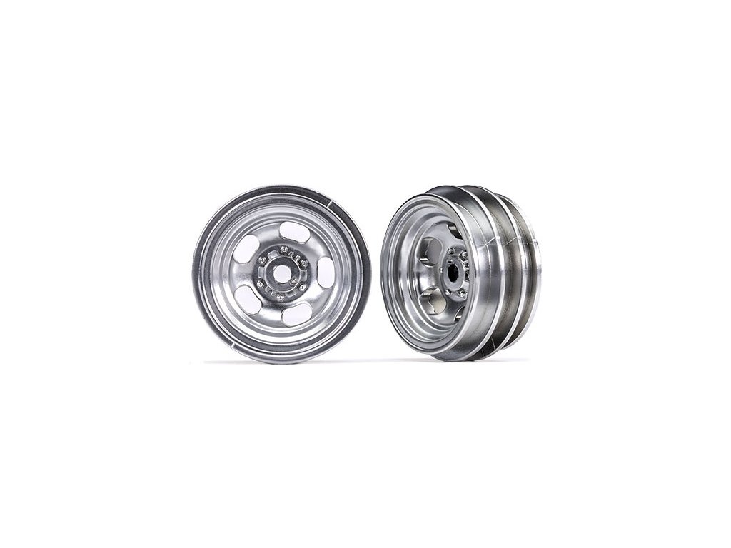 Traxxas disk 1.0" polomatný chrom (2) s pěti otvory, pro RC modely aut TRX-4M. Unašeč je šetihran 7 mm.