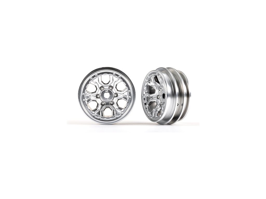 Traxxas disk 1.0" spoke polomatný chrom (2), pro RC modely aut TRX-4M. Unašeč je šetihran 7 mm.