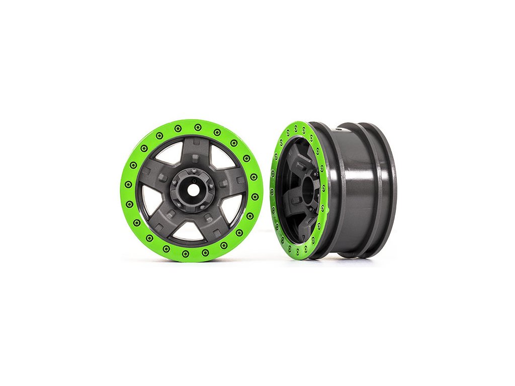 Traxxas disk 2.2" TRX-4 Sport šedý s imitací zelené Beadlock kroužku (2 ks). Unašeč 12 mm.