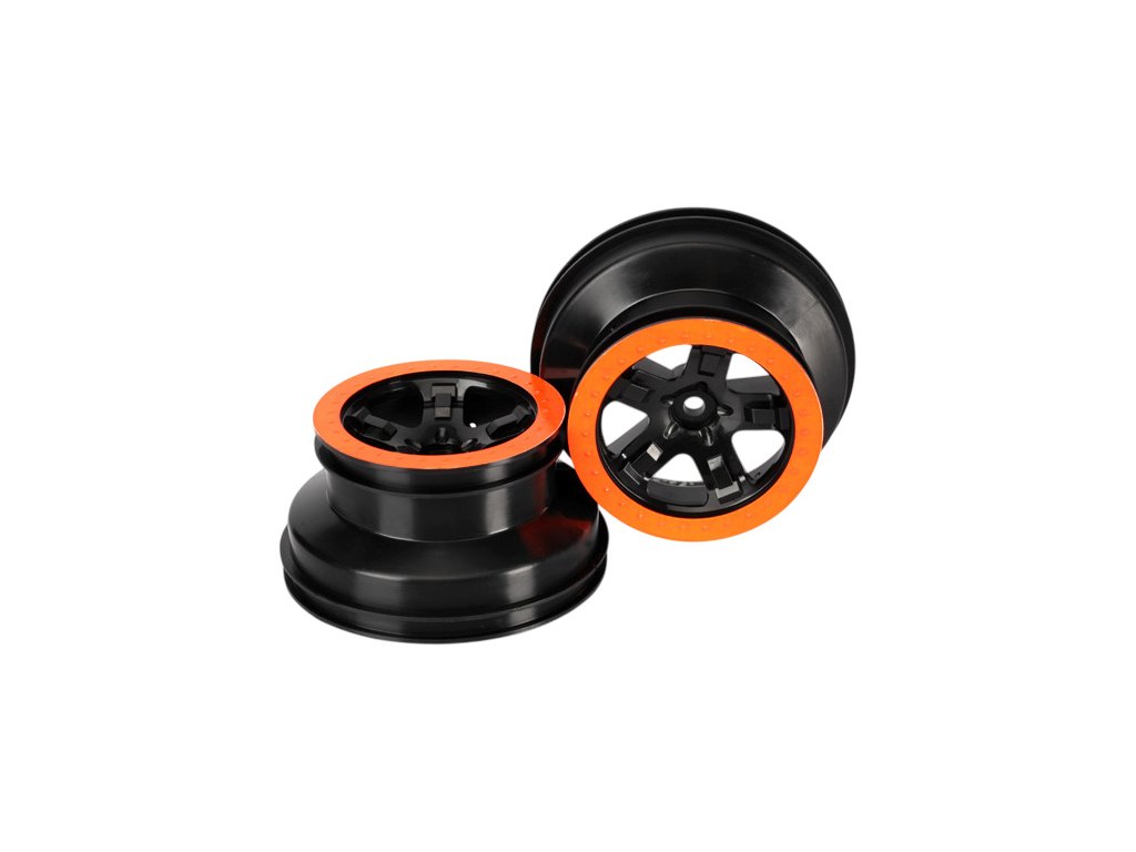 Disky kol 4WD přední/zadní, 2WD přední SCT černý-oranžový (2 ks). Průměr disku 56/76mm (2.2/3.0"), šířka 41mm. Pro auta Traxxas Slash. Šestihran 12mm.