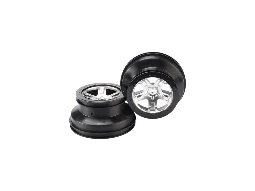 Disky kol 4WD přední/zadní, 2WD přední SCT chromově matné s černým ráfkem. Duální průměr disku 2.2/3.0", šířka 41mm.. Pro auta Traxxas Slash. Šestihran 12mm.