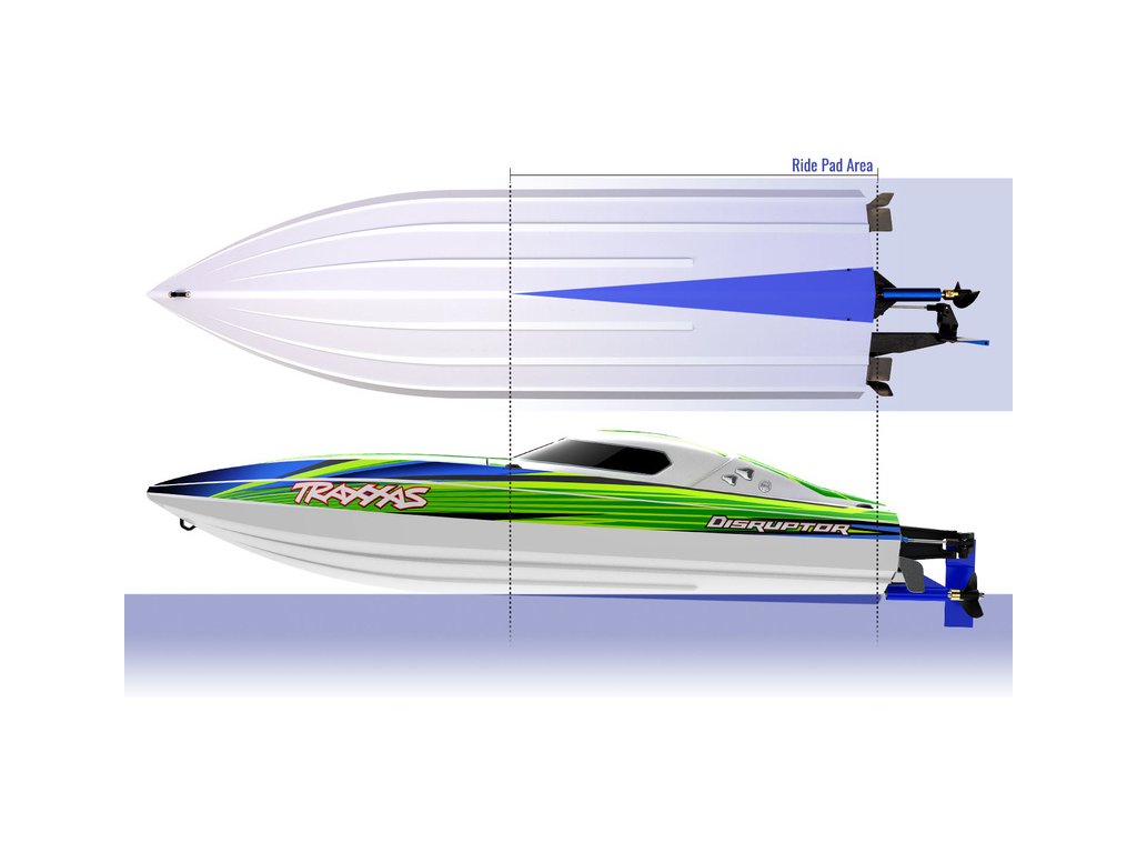 RC model lodi Traxxas Disruptor s délkou 26“ je dokonale navržený, aby byl hbitý a obratný na menších vodních plochách a rychlý a stabilní na velké otevřené vodní hladině. Disruptor dosáhne rychlosti až 64 km/h a přitom s ním můžete dělat až „kaskadérské kousky“. V případě převrácení je vybaven funkcí self-righting pro automatické otočení. Pro napájení je doporučeno použít jeden akumulátor Traxxas 4S LiPo, se kterým dosáhnete agresivní akcelerace a maximální rychlosti.