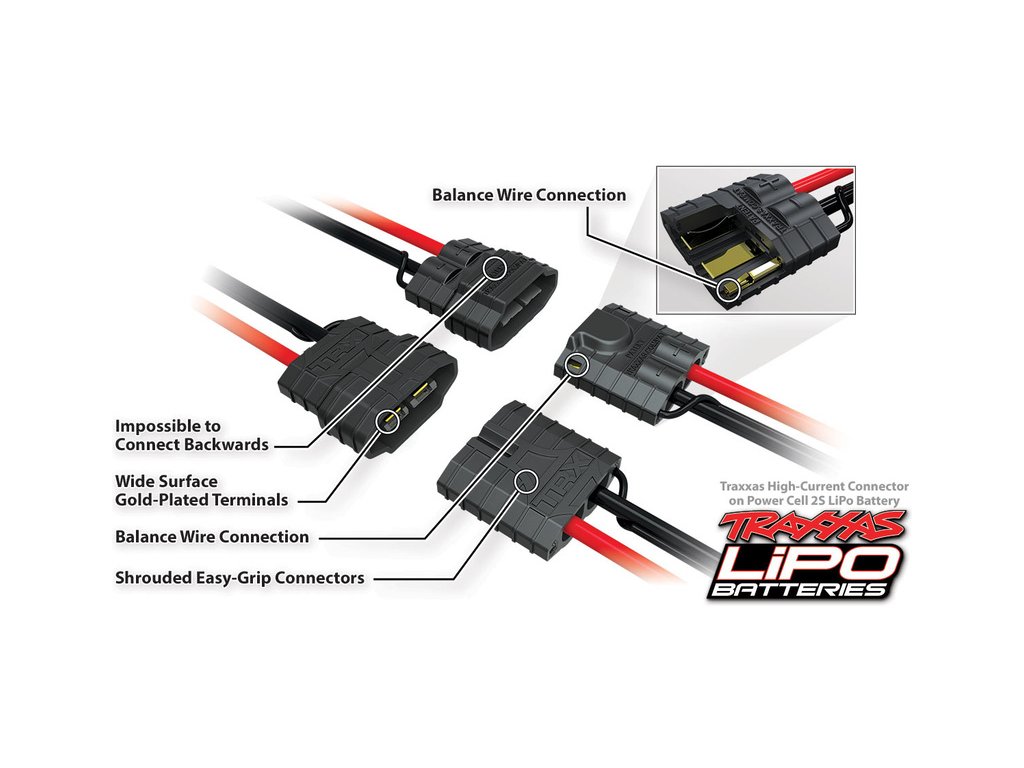 Univerzálními nabíječi Traxxas lze nabíjet akumulátory Traxxas typu LiPo a NiMH. (Nabíječ obsažený v balení je určen jen pro akumulátor typu NiMH, který je součástí balení.) Nabíječe Traxxas představují jednoduchý a bezpečný způsob nabíjení akumulátorů. Společnost Traxxas využívá jedinečný systém iD, díky tomu máte vždy jistotu, že vše jednoduše a bezpečně zapojíte. V konektoru akumulátoru je integrovaný čip, který nabíječ Traxxas automaticky rozpozná a nastaví za Vás všechny parametry nabíjení akumulátoru. Více informací zde.