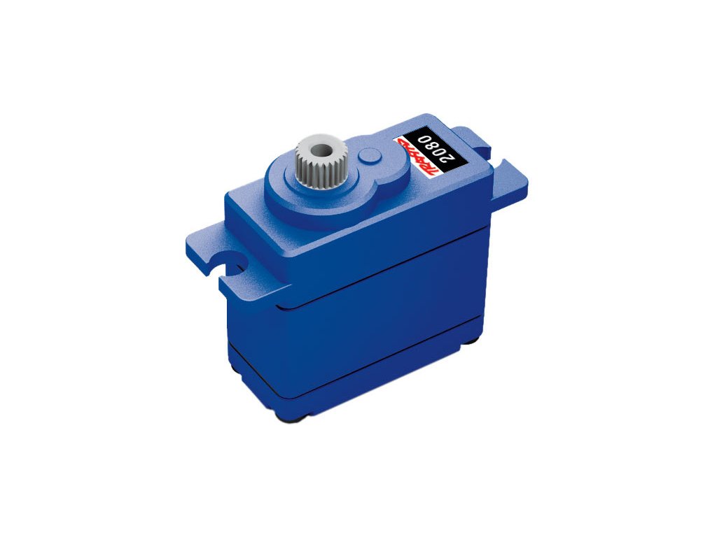 Digitální mini servo Traxxas servo 2080A voděodolné se stejnosměrným motorem a nylonovými převody má moment 3 kg.cm a rychlost 0.11 s/60°@ 6.0 V. Pro odolnost vůči vodě* je krabička serva osazena těsněním.