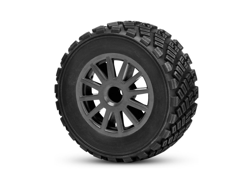 Odolná kola s dvanácti paprsky ve stylu rally obsahují 12 mm unašeč a stejné odsazení jako kola modelů Slash 4x4. Pneumatiky mají jedinečný směrový dezén s vysokou přilnavostí na tvrdých površích i mimo ně.