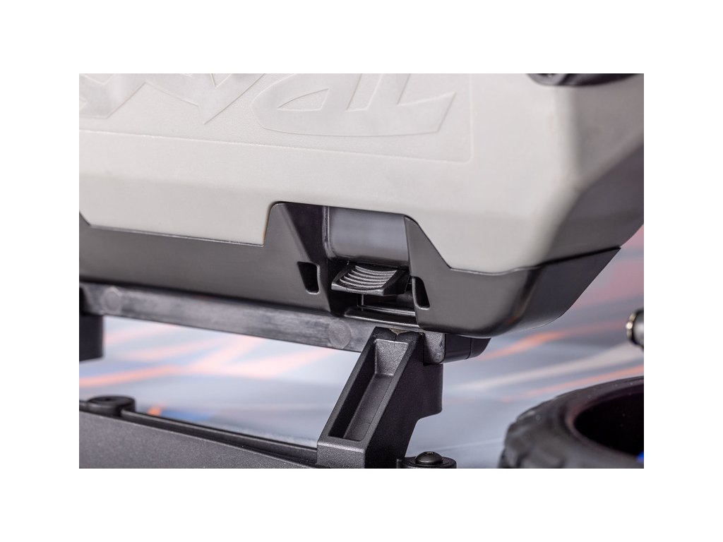Unikátní systém uchycení karoserie pomocí zobáčků na bocích modelu (u prahů), umožňuje rychlou a snadnou výměnu baterie a čistý vzhled modelu neruší klipy.