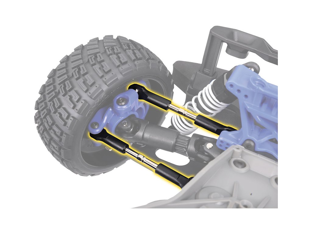 Odolná táhla řízení s ocelovou středovou tyčí o průměru 4 mm, umožňují změnu nastavení odklonu a sbíhavosti kol pomocí plochého klíče. Můžete tak dokonale vyladit chování modelu podle vašich představ.