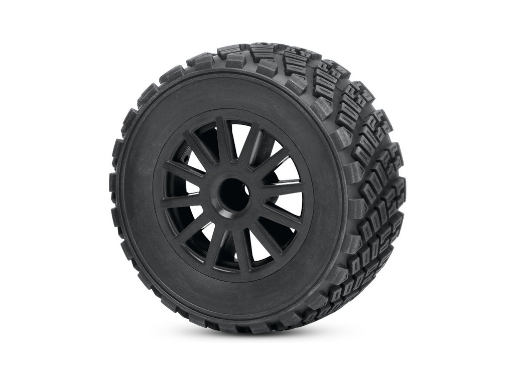 Odolná kola s dvanácti paprsky ve stylu rally obsahují 12 mm unašeč a stejné odsazení jako kola modelů Slash 4x4. Pneumatiky mají jedinečný směrový dezén s vysokou přilnavostí na tvrdých površích i mimo ně.
