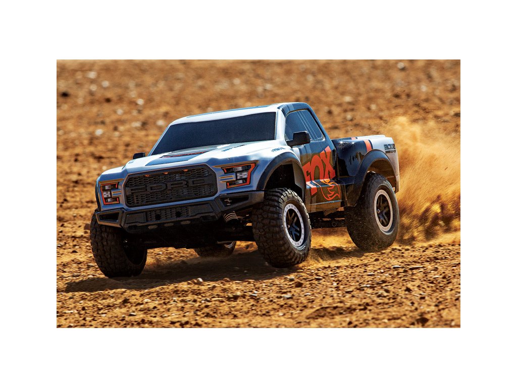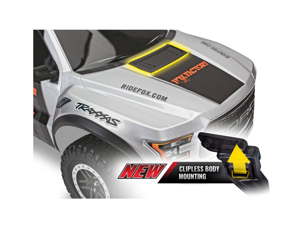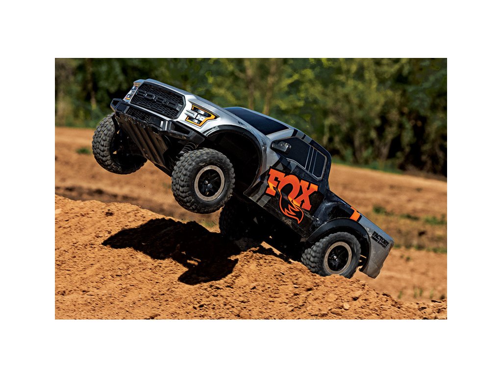 Výjimečný vzhled modelu dodává detailně zpracovaná licencovaná karoserie Ford F-150 Raptor v závodní zbarvení značky Fox. Karoserie obsahuje exkluzivní bezsponkový systém uchycení pro snadnou demontáž a čistý vzhled. Ford F-150 Raptor má pečlivě naladěný podvozek s nezávislým zavěšením, který vychází z modelu Slash, díky tomu si hravě poradí s různými povrchy jako asfalt, nízká tráva i náročnější terén. Pro jízdu v mokrém prostředí je na modelu voděodolná* elektronika.