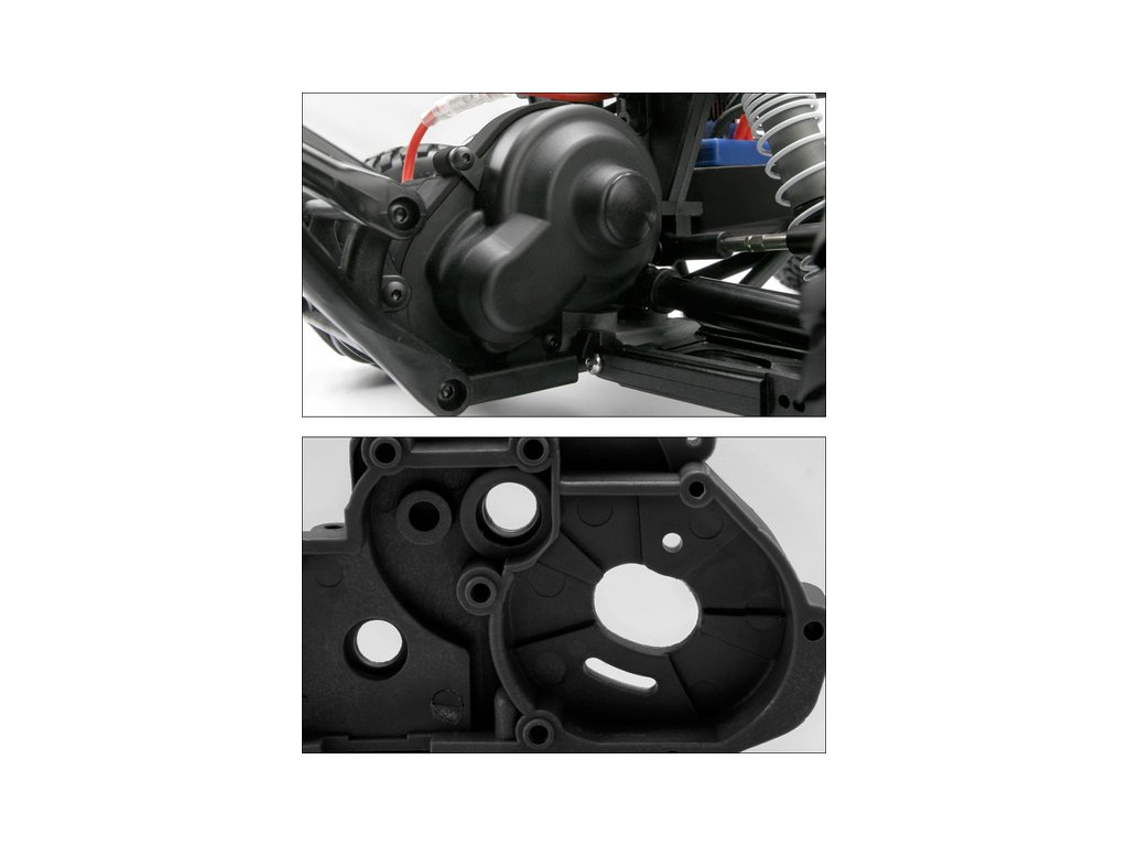 Převodovka, disková spojka a planetový diferenciál jsou uzavřeny do jednoho kompaktního celku. Převodovka s třecí spojkou spolehlivě přenáší výkon motoru na nápravy, planetová převodovka diferenciálu Magnum 272™ má ozubená kola vyrobená z kalené oceli. Tento systém vyžaduje naprosto minimální údržbu. K dispozici jsou pastorky a ozubená kola s různými počty zubů, takže si můžete model přesně vyladit pro rychlostní i technické tratě.
