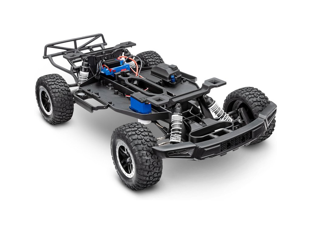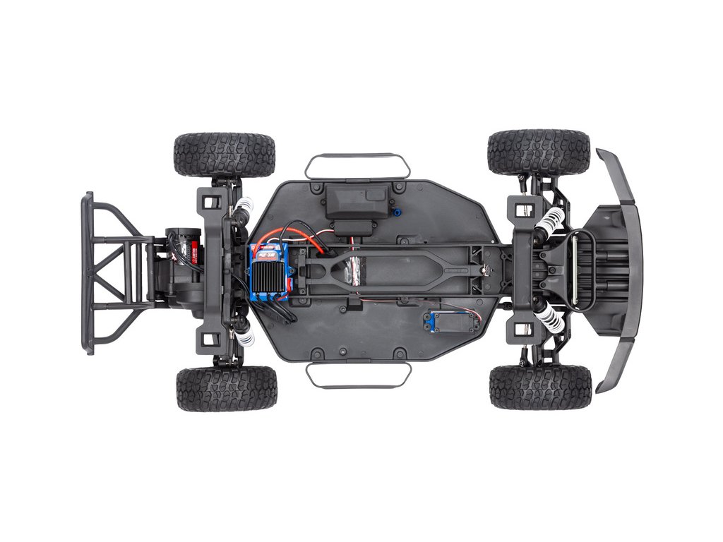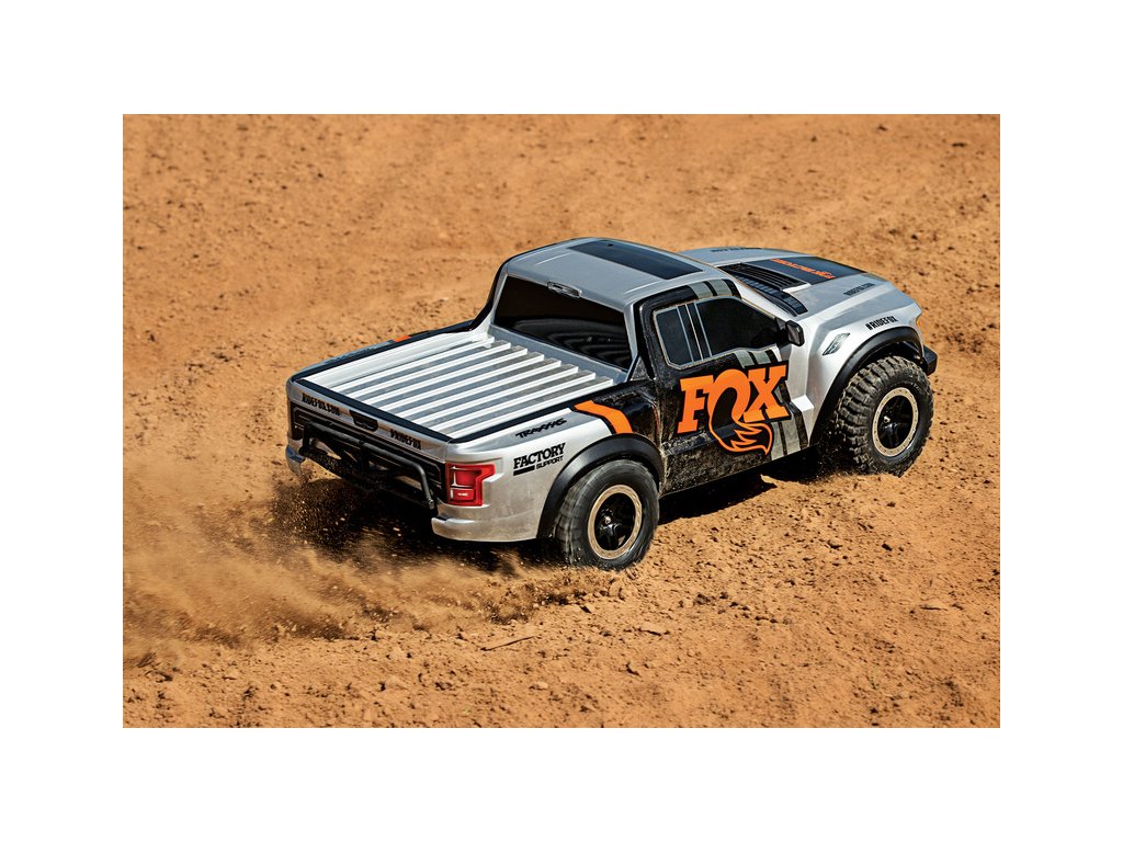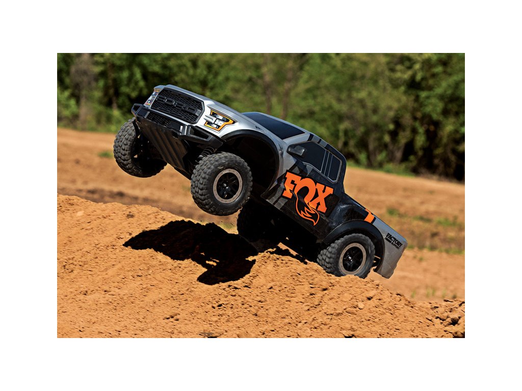 RC model auta Ford Raptor v měřítku 1:10 v sobě kombinuje úžasný vzhled detailní licencované karoserie s motivem Fox a osvědčené šasi Slash. Model je poháněn střídavým motorem a regulátorem BL-2S pro napájení 2S LiPo akumulátory. Střídavý pohonný systém přináší brutálnější akceleraci, dlouhou životnost a rychlost modelu až 56 km/h. Navíc je model továrně vybaven sadou Extreme Heavy Duty pro vysokou odolnost a exkluzivním bez-sponkovým systémem upínání karoserie.