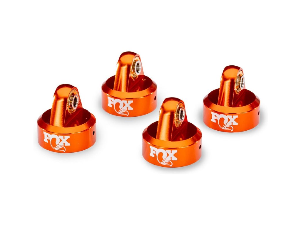 Sada čtyř hliníkových hlav tlumičů Traxxas GTR s oranžovým eloxováním a laserově gravírovaným logem FOX. Přesně obráběné hlavy tlumičů pevně drží, poskytují zvýšeno odolnost a úžasný vzhled. Kuličky čepů jsou exkluzivně uloženy v bronzových pouzdrech.