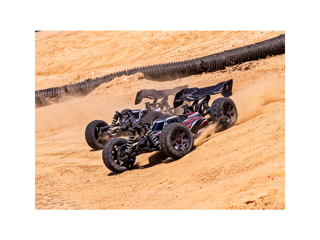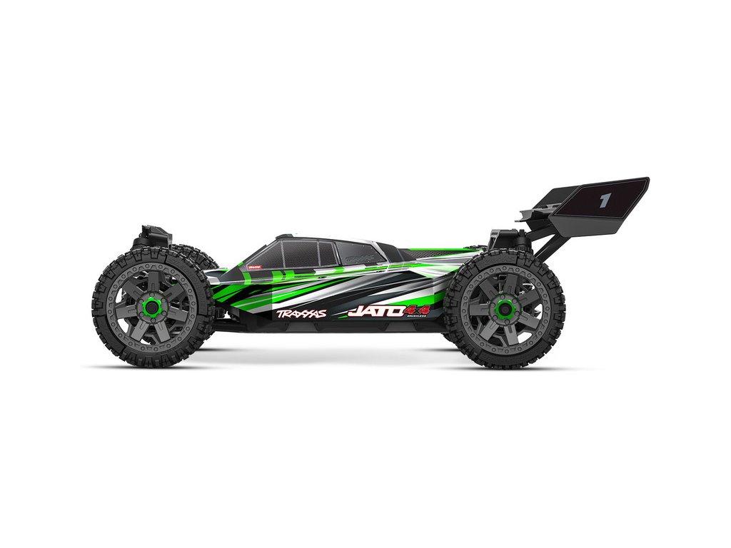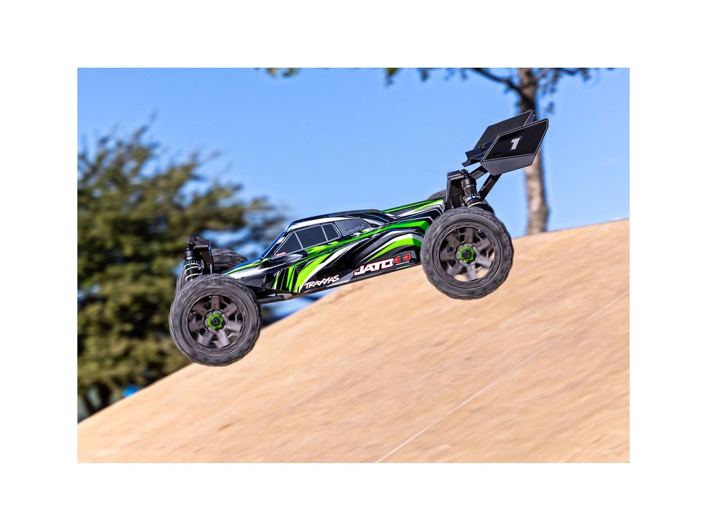 RC model buggy Traxxas Jato v měřítku 1:8 přináší rychlost, odolnost, náhon 4x4 a hlavně zábavnou jízdu. Obsahuje podvozek s nízkým těžištěm, přesnou geometrii zavěšení a optimální rozložení hmotnosti pro hbitost a výbornou dynamiku řízení. Výsledkem je, že Jato 4x4 se ovládá s přesností závodní buginy a poskytuje všechny uživatelské výhody a jednoduchost vlastní modelům Traxxas. Model pohání střídavý motor s regulátorem BL-2S a jezdí až 48 km/h! Obsahuje bezsponkovou karoserii pro snadnou výměnu akumulátoru a komponenty pro vysokou odolnost - Extreme Heavy Duty. Osvědčená RC souprava TQ 2.4 GHz doplňuje tento špičkový RC model.