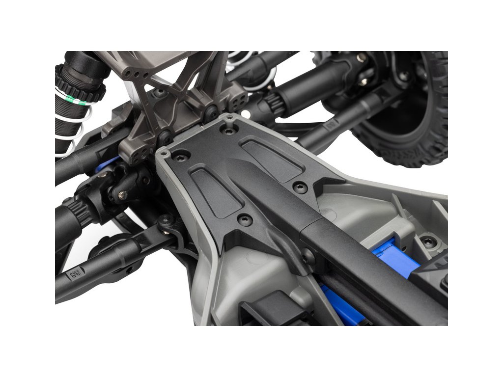Továrně instalované komponenty zavěšení a prvků pohonu pro vysokou odolnost - Extreme Heavy Duty, jsou vyrobeny z těch nejodolnějších materiálů, které společnost Traxxas používá. Pevnost dále zvyšuje středová výztuha a věže tlumičů s dvojitým uchycením proti střihu. Robustní poloosy mají vylepšené uchycení kardanového kloubu.