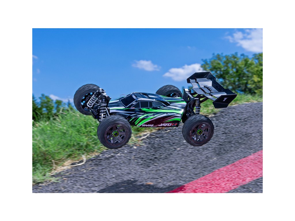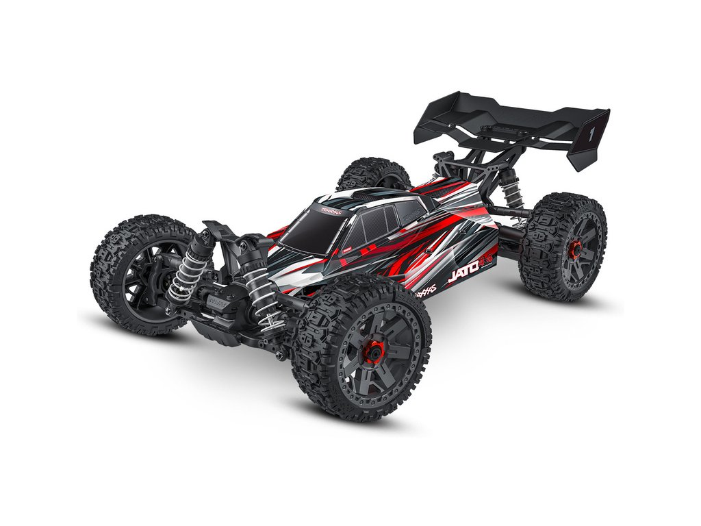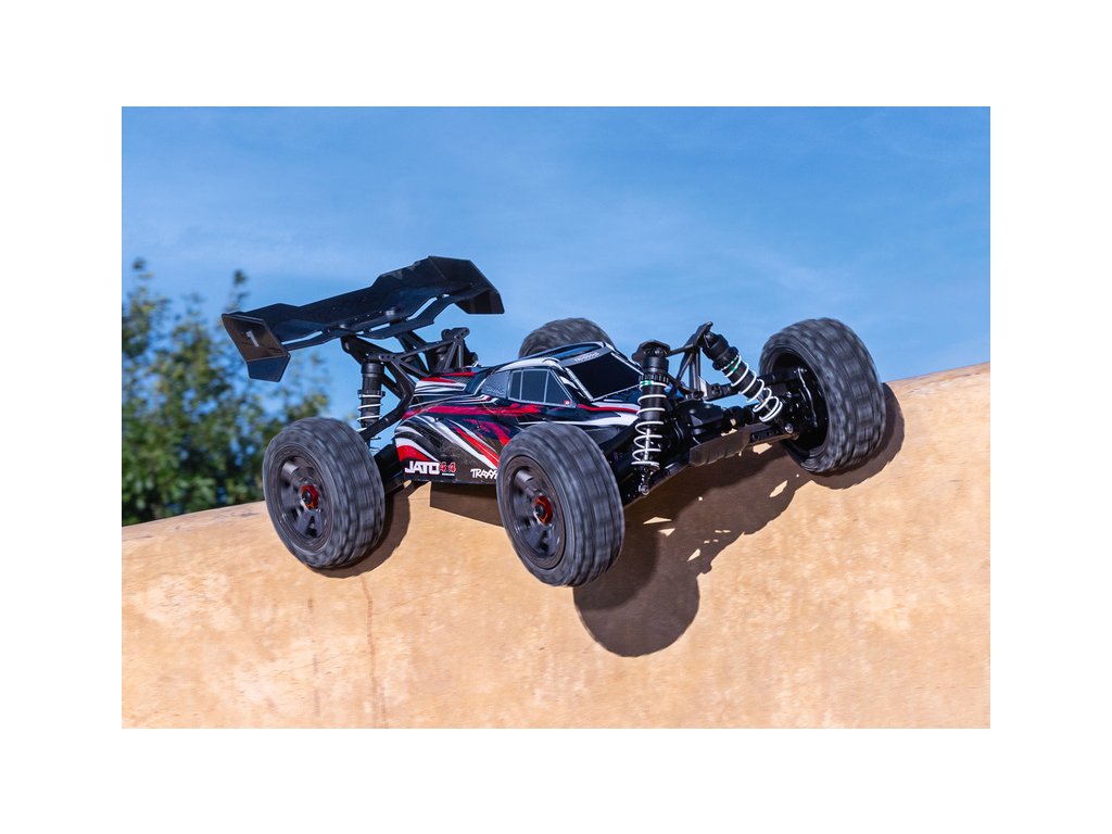 RC model buggy Traxxas Jato v měřítku 1:8 přináší rychlost, odolnost, náhon 4x4 a hlavně zábavnou jízdu. Obsahuje podvozek s nízkým těžištěm, přesnou geometrii zavěšení a optimální rozložení hmotnosti pro hbitost a výbornou dynamiku řízení. Výsledkem je, že Jato 4x4 se ovládá s přesností závodní buginy a poskytuje všechny uživatelské výhody a jednoduchost vlastní modelům Traxxas. Model pohání střídavý motor s regulátorem BL-2S a jezdí až 48 km/h! Obsahuje bezsponkovou karoserii pro snadnou výměnu akumulátoru a komponenty pro vysokou odolnost - Extreme Heavy Duty. Osvědčená RC souprava TQ 2.4 GHz doplňuje tento špičkový RC model.