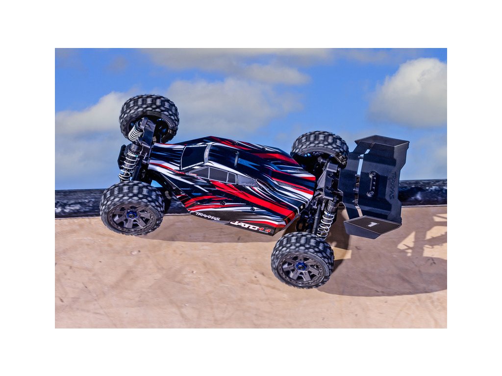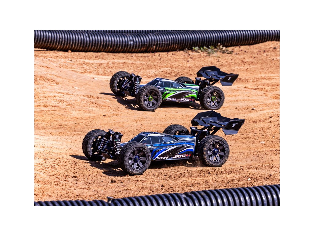 RC model buggy Traxxas Jato v měřítku 1:8 přináší rychlost, odolnost, náhon 4x4 a hlavně zábavnou jízdu. Obsahuje podvozek s nízkým těžištěm, přesnou geometrii zavěšení a optimální rozložení hmotnosti pro hbitost a výbornou dynamiku řízení. Výsledkem je, že Jato 4x4 se ovládá s přesností závodní buginy a poskytuje všechny uživatelské výhody a jednoduchost vlastní modelům Traxxas. Model pohání střídavý motor s regulátorem BL-2S a jezdí až 48 km/h! Obsahuje bezsponkovou karoserii pro snadnou výměnu akumulátoru a komponenty pro vysokou odolnost - Extreme Heavy Duty. Osvědčená RC souprava TQ 2.4 GHz doplňuje tento špičkový RC model.