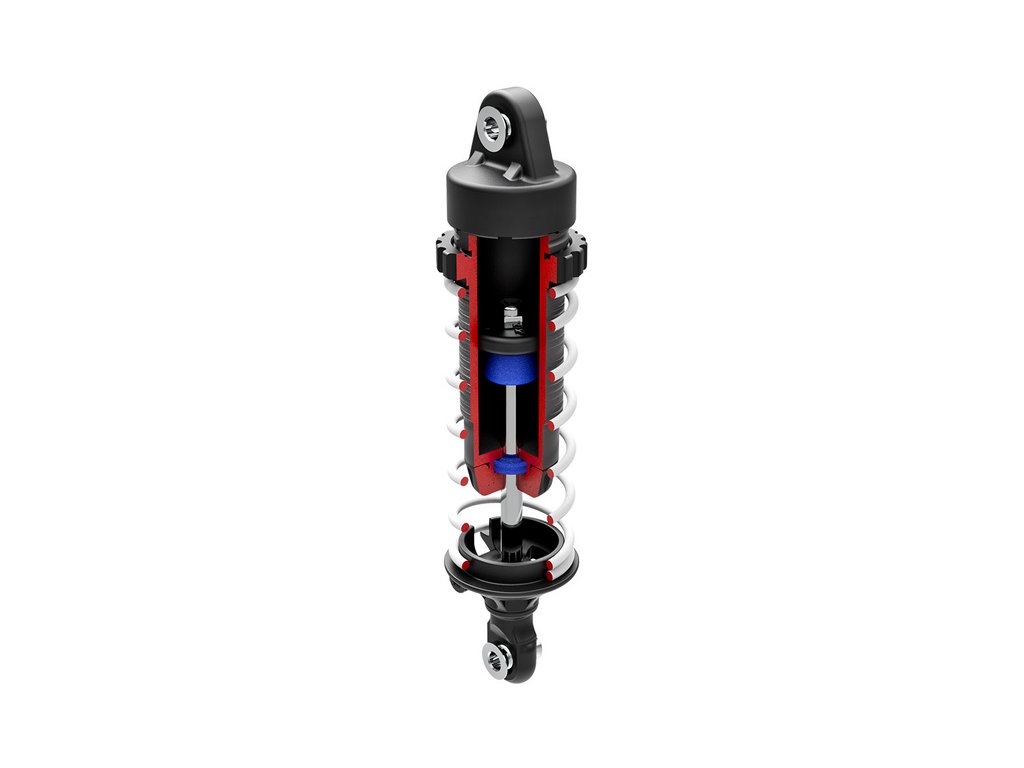 Tlumiče GTR představují vrchol techniky. Jejich 13 mm průměr pojme až o 70% více oleje než standardní tlumiče Ultra. Proti úniku oleje kolem pístnice je tlumič vybaven dvojitými X-kroužky. Předpětí pružin se pohodlně nastavuje pomocí matice.