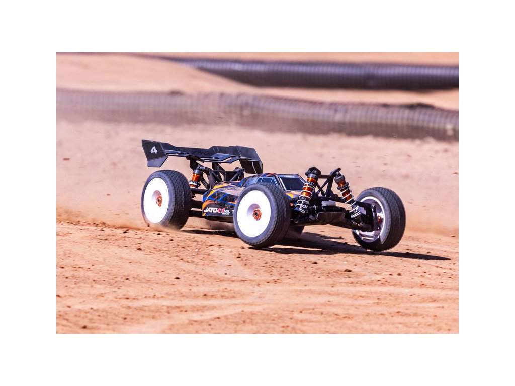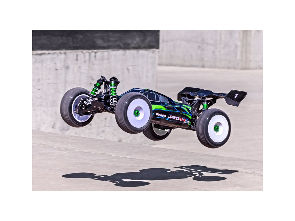 RC model buggy Traxxas Jato VXL-4S v měřítku 1:8 přináší vysokou rychlost, odolnost, náhon 4x4 a hlavně zábavnou jízdu. Obsahuje podvozek s nízkým těžištěm, přesnou geometrii zavěšení a optimální rozložení hmotnosti pro hbitost a výbornou dynamiku řízení. Výsledkem je, že Jato 4x4 se ovládá s přesností závodní buginy a poskytuje všechny uživatelské výhody a jednoduchost vlastní modelům Traxxas. Model pohání extra výkonný střídavý motor s regulátorem VXL-4S a jezdí až 96 km/h! Obsahuje bezsponkovou karoserii pro snadnou výměnu akumulátoru, eloxované hliníkové díly a komponenty pro vysokou odolnost - Extreme Heavy Duty. RC souprava TQi 2.4 GHz poskytuje další porci funkcí v podobě elektronické stabilizace jízdy TSM, možnosti spojení přes Bluetooth a telemetrii (pro Bluetooth a telemetrii je nutný BT modul - prodává se samostatně).