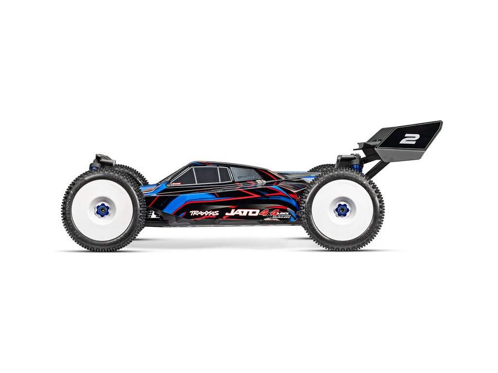 RC buggy Traxxas Jato 1:8 přináší vysokou rychlost, odolnost a přesné řízení jako závodní model. Pohání ji střídavý motor s regulátorem VXL-4S a jezdí až 96 km/h! Obsahuje bezsponkovou karoserii, hliníkové díly, komponenty Extreme HD a náhon 4WD. Stabilizace TSM. RC souprava TQi 2.4 GHz.