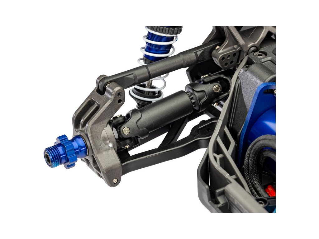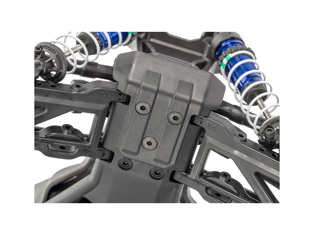 Továrně instalované komponenty zavěšení a prvků pohonu pro vysokou odolnost - Extreme Heavy Duty, jsou vyrobeny z těch nejodolnějších materiálů, které společnost Traxxas používá. Pevnost dále zvyšuje hliníková středová výztuha a věže tlumičů s dvojitým uchycením proti střihu. Robustní poloosy mají vylepšené uchycení kardanového kloubu.