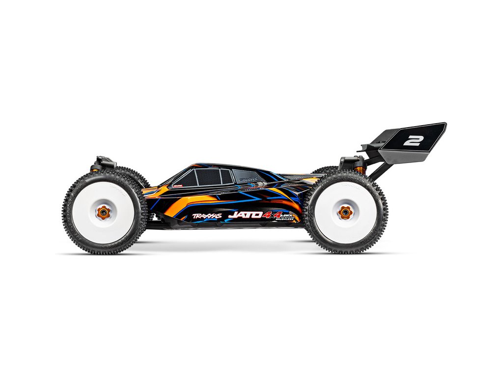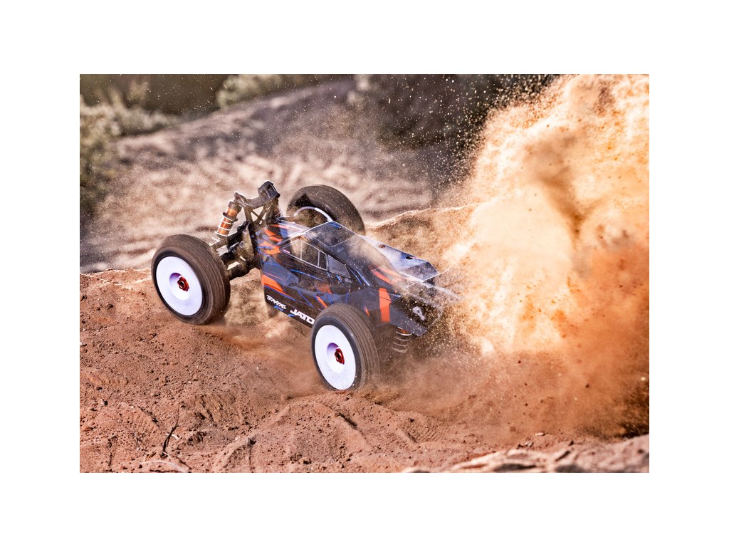 RC buggy Traxxas Jato 1:8 přináší vysokou rychlost, odolnost a přesné řízení jako závodní model. Pohání ji střídavý motor s regulátorem VXL-4S a jezdí až 96 km/h! Obsahuje bezsponkovou karoserii, hliníkové díly, komponenty Extreme HD a náhon 4WD. Stabilizace TSM. RC souprava TQi 2.4 GHz.