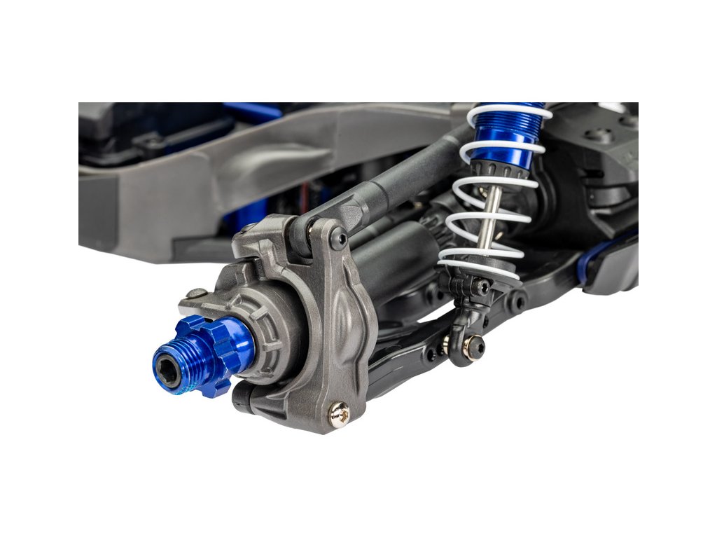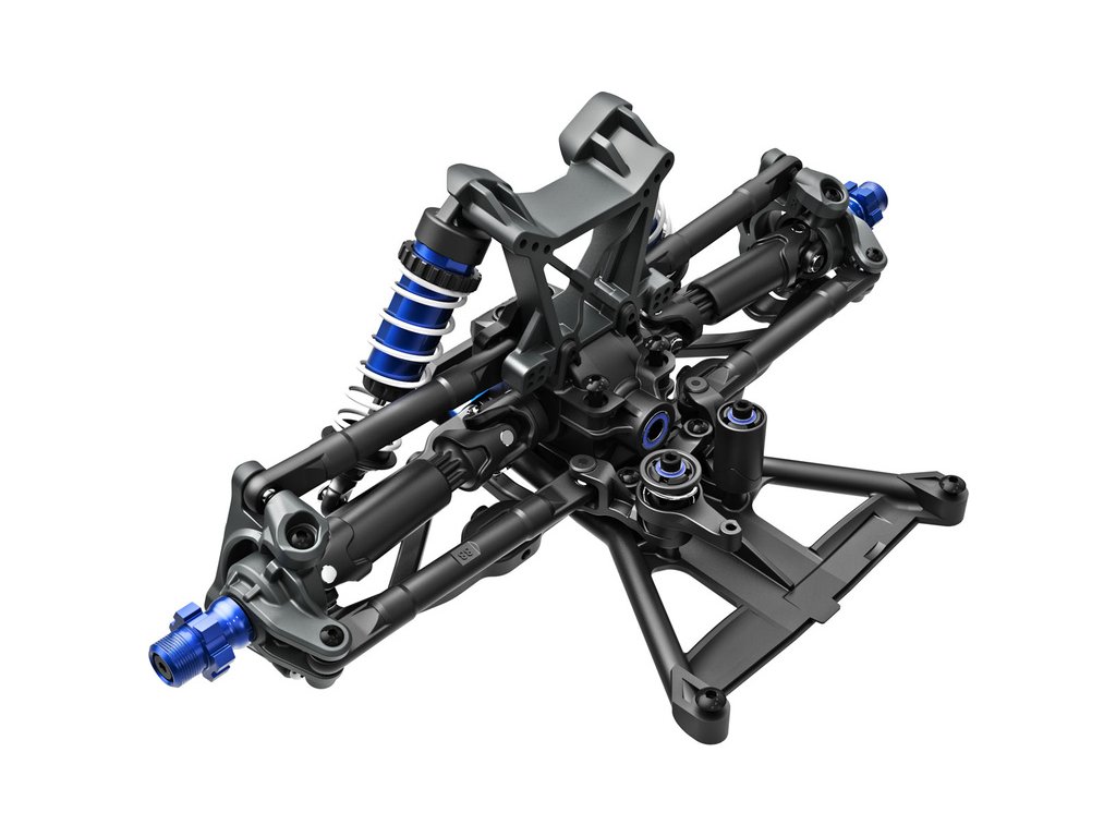 Továrně instalované komponenty zavěšení a prvků pohonu pro vysokou odolnost - Extreme Heavy Duty, jsou vyrobeny z těch nejodolnějších materiálů, které společnost Traxxas používá. Pevnost dále zvyšuje hliníková středová výztuha a věže tlumičů s dvojitým uchycením proti střihu. Robustní poloosy mají vylepšené uchycení kardanového kloubu.
