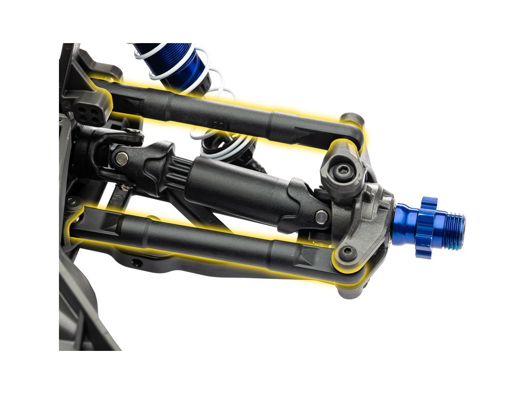 Dlouhý zdvih ramen tlumí i prudké nárazy a zlepšuje ovladatelnost modelu. V každé situaci tak bude mít přesnou a rychlou odezvu řízení, díky maximální kontaktu s podkladem.