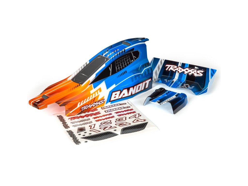 Hotová Traxxas karosérie Bandit oranžová, má kompletní a hotové zbarvení s aplikovanými obtisky. Tato odolná polykarbonátová karosérie má nejžhavější barvu ProGraphix® s originální barevnou kreací a je připravena k montáži na vaše auto Traxxas Bandit 1:10.