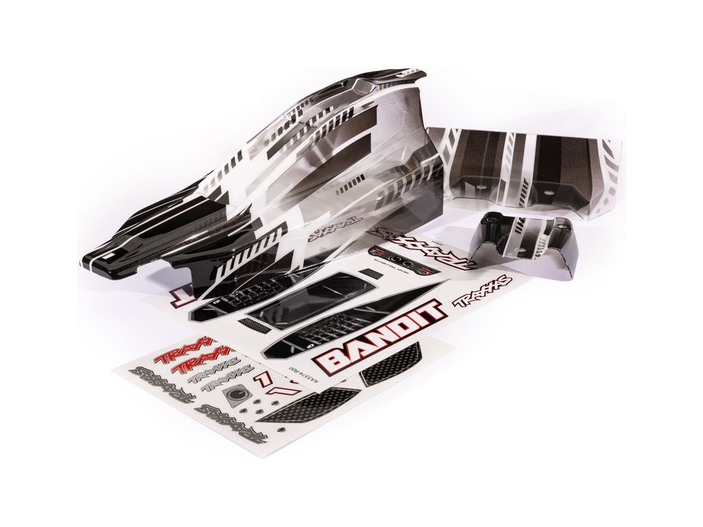 Traxxas karosérie Bandit ProGraphix obsahuje přední a zadní část s křídlem a obtiskovým archem. Vyberte si své vlastní zbarvení, použijte detailní grafiku k vytvoření vlastní barevné kreace. Okamžitý profesionální výsledek! Karosérie je kompletně oříznuta s předvrtanými otvory pro snadnou instalaci. Ochranná přestřikovací fólie.