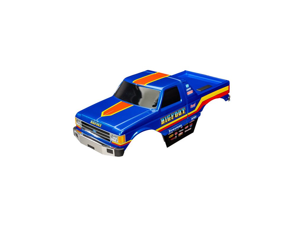 Traxxas karosérie Bigfoot No. 8 Classic (bezsponková). Oficiálně licencovaná, nabarvená, aplikované obtisky, sestavená včetně bezsponkového systému uchycení. Náhradní díl pro RC modely aut Traxxas Bigfoot 1:10 4WD.