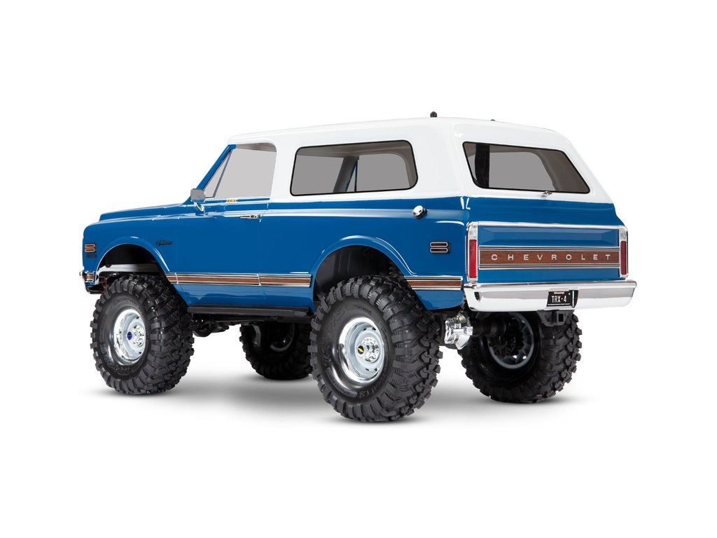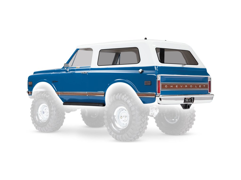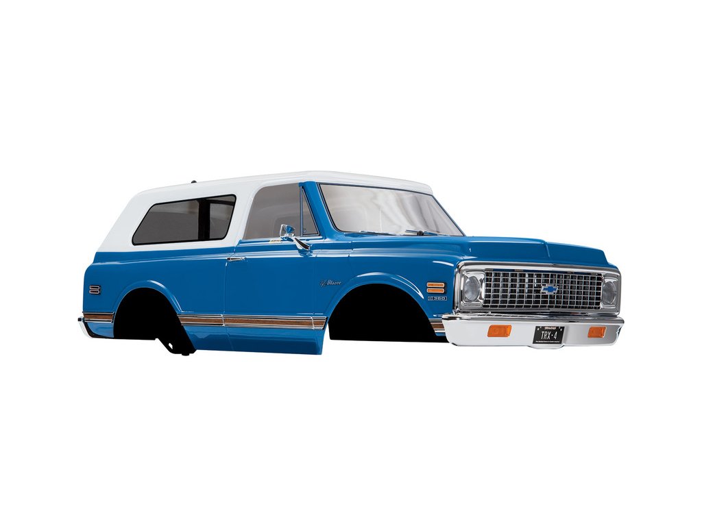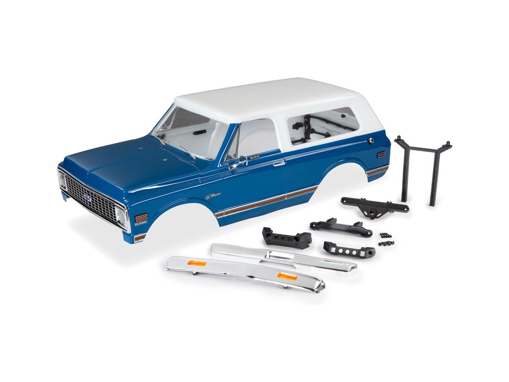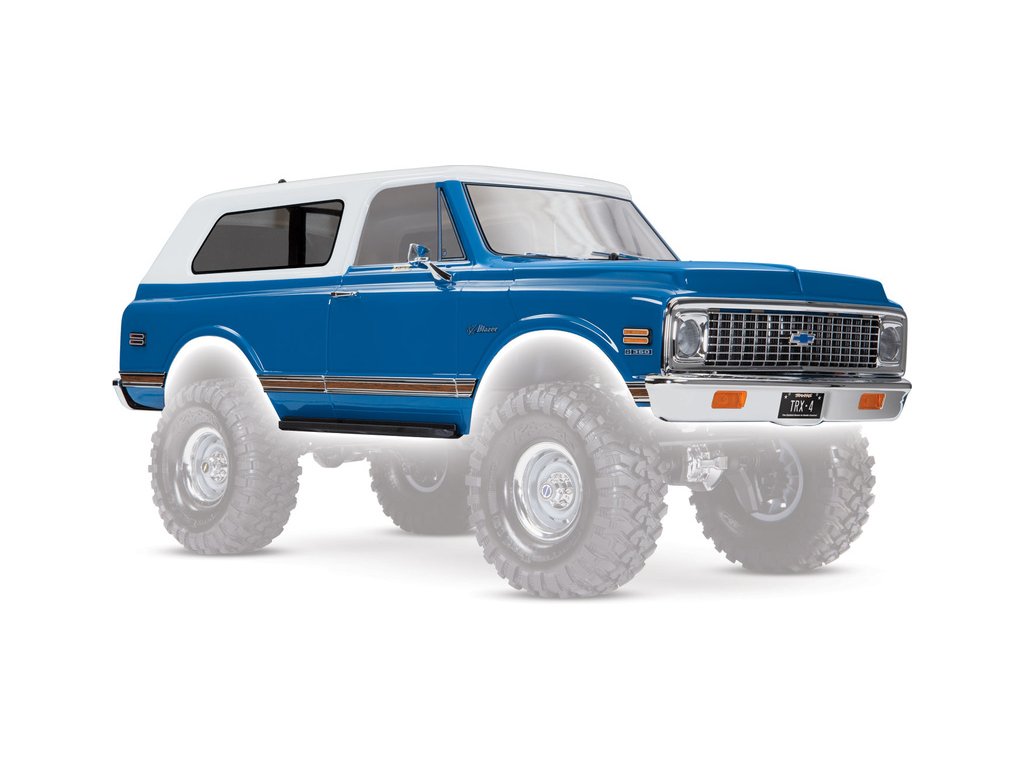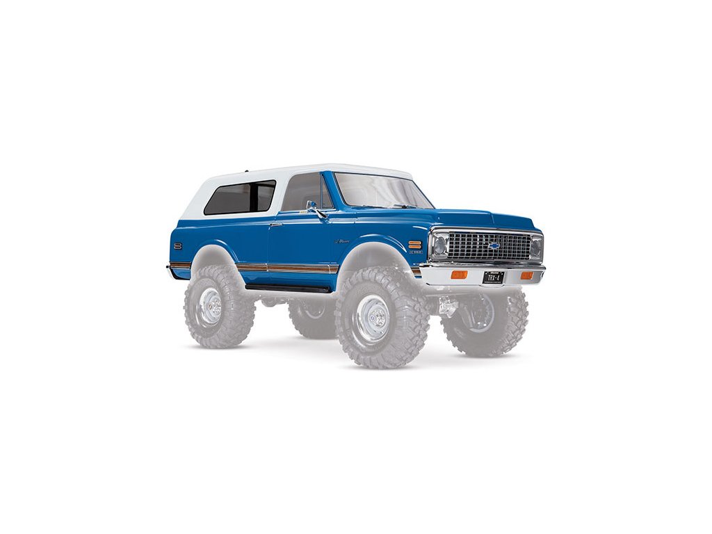 Traxxas karosérie Chevrolet Blazer 1972 modrá - Mořsky modrá karoserie, se sametově bílou nadstavbou dodá vašemu modelu TRX-4 ikonický vzhled jako ze 70 let. Autentické chromové doplňky včetně imitace dřeva.