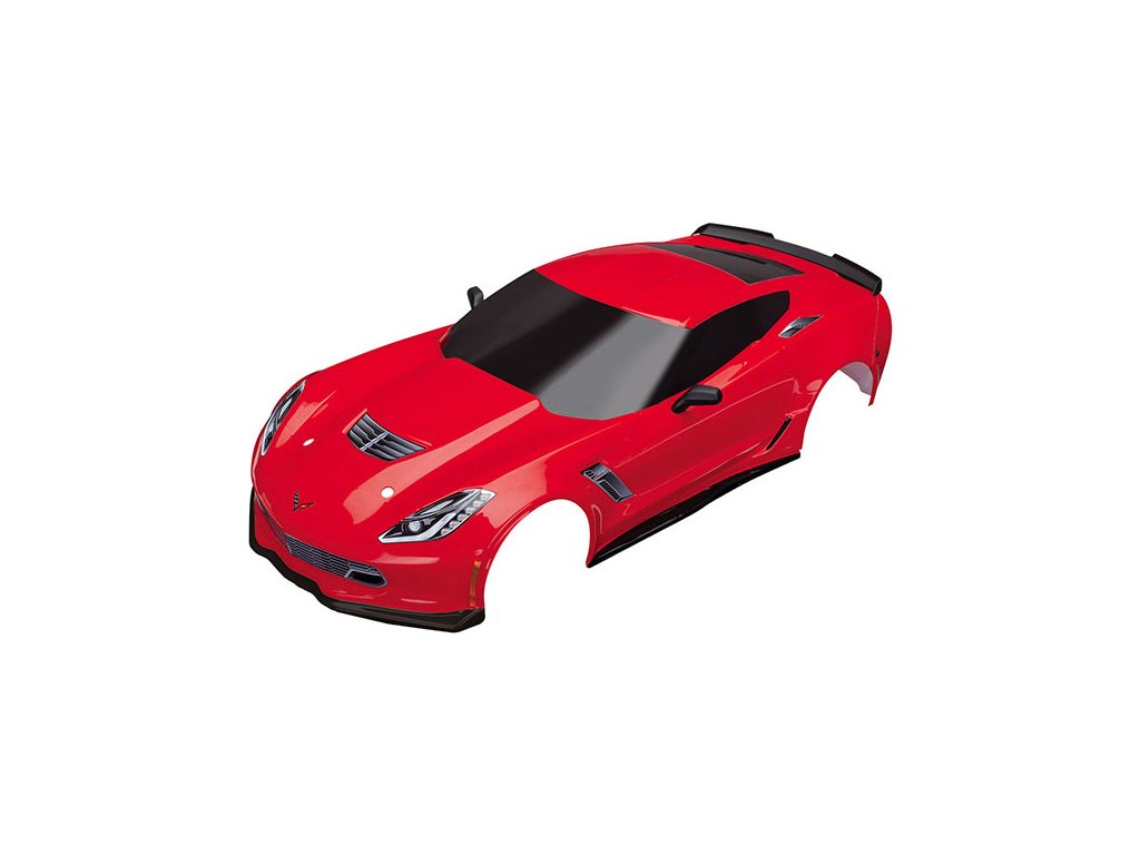 Karoserie Traxxas Chevrolet Corvette Z06 - červená. Hotová nabarvená karoserie s potisky je tuning pro RC modely aut Traxxas na podvozku 4-Tec 2.0 1:10, 4-Tec 2.0 Ford GT 1:10 a 4-Tec 2.0 Ford Mustang GT 1:10.