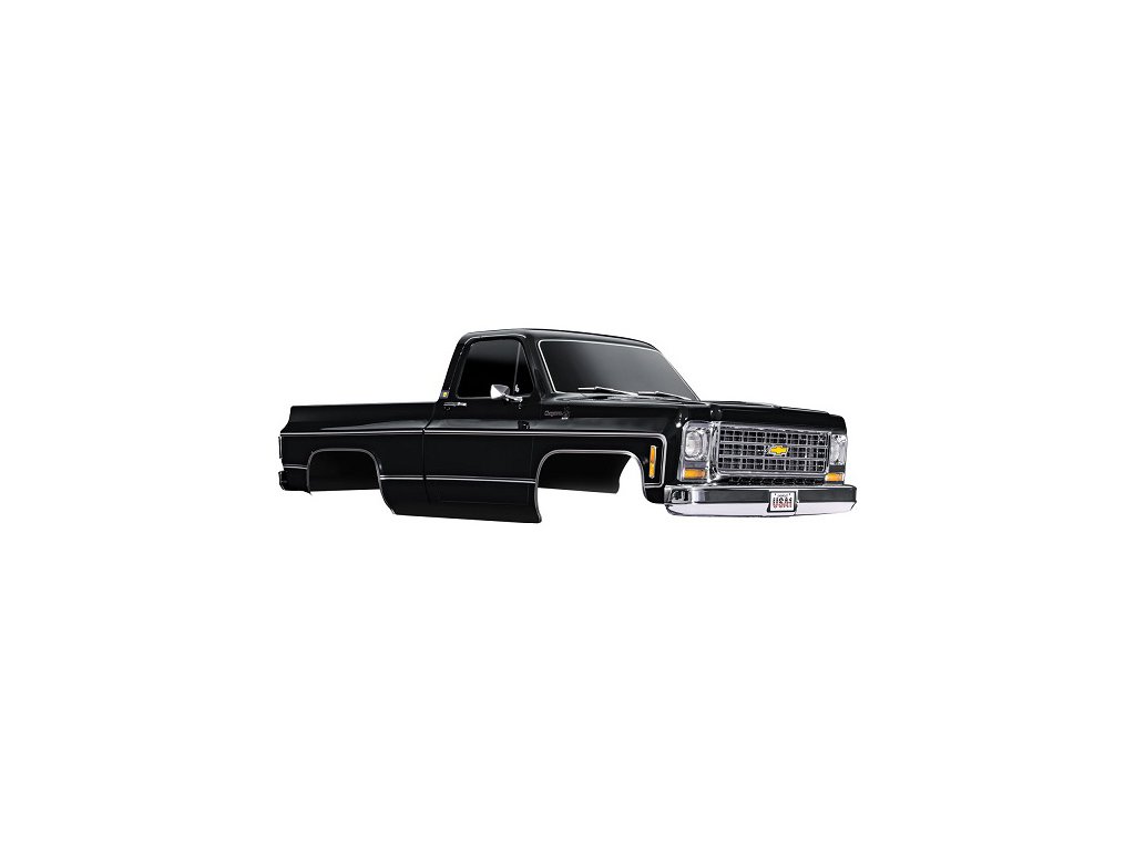 Náhradní díl pro RC modely aut Traxxas TRX-4 Chevrolet K10 1979: karosérie černá (kompletní nabarvená). Včetně přední mřížky, zrcátek, klik dveří, stěračů). Rám bez-sponkového systému upínaní karoserie.
