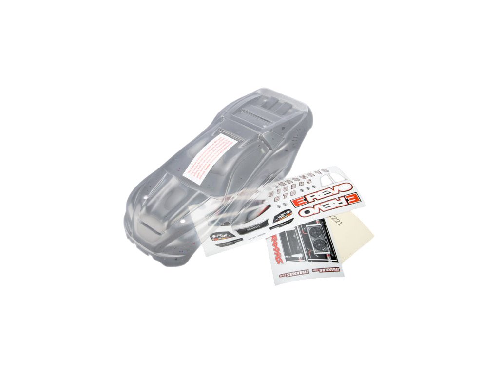 Nenabarvená lexanová karosérie pro auta Traxxas E-Revo 1:16 s archem samolepek.