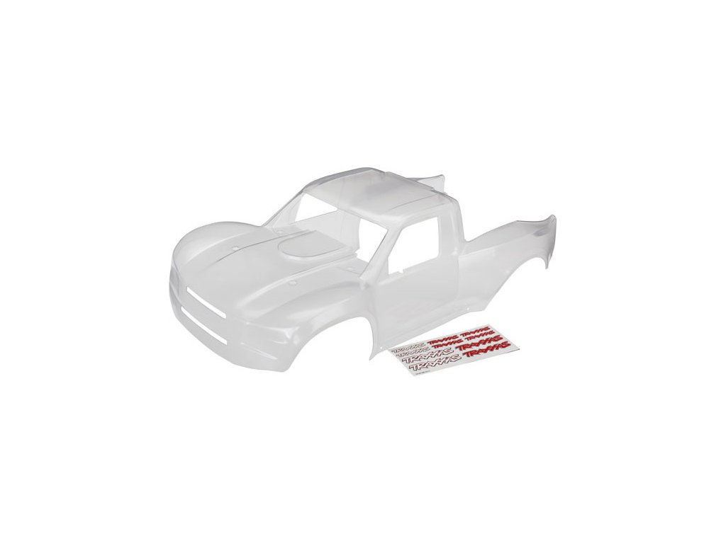 Náhradní díl pro Traxxas Desert Racer 1:8: karosérie Desert Racer čirá, samolepky.