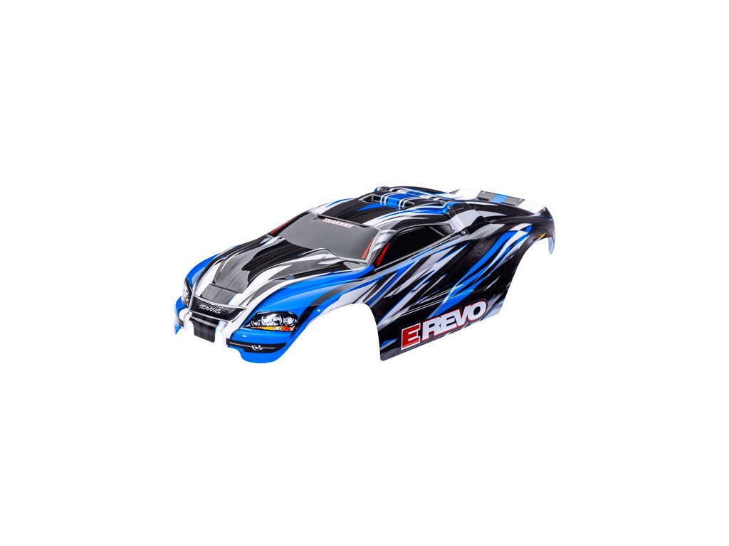 Traxxas karosérie E-Revo 1:16 modrá - hotová nabarvená karoserie, z odolného polykarbonátu, aplikované obtisky. Pro Traxxas E-Revo 1:16.