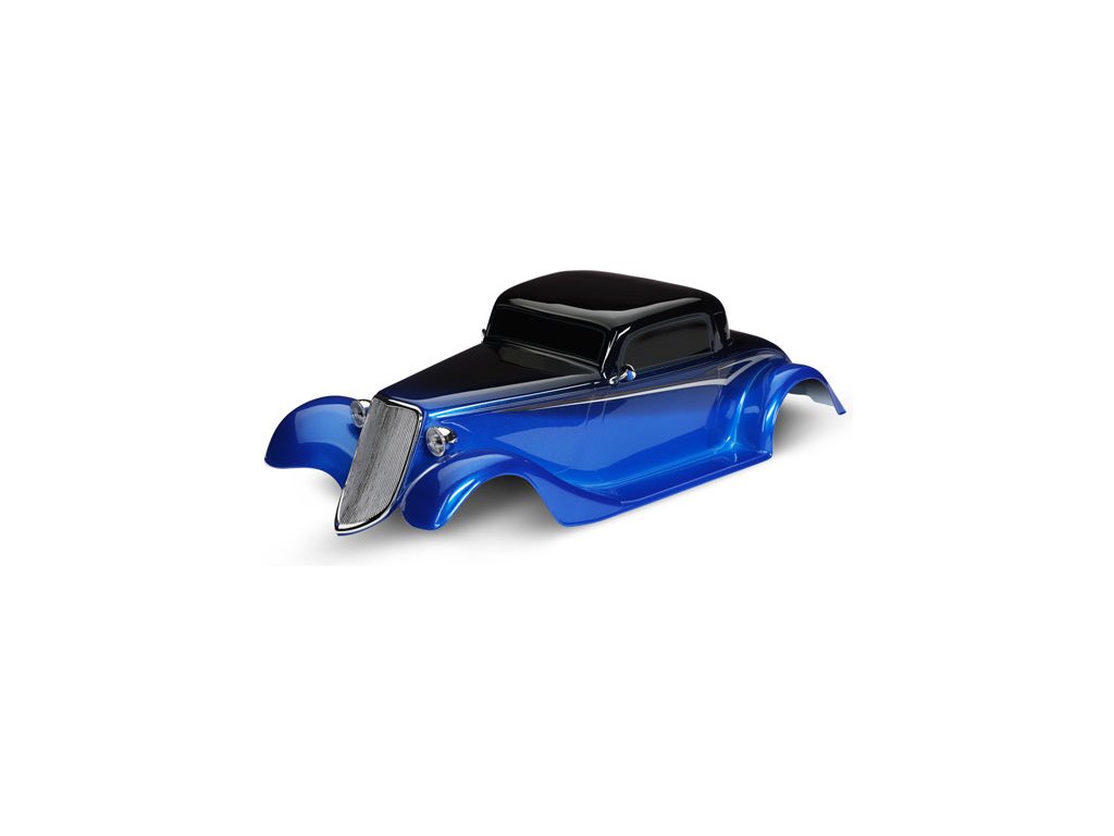Traxxas karosérie Factory Five 33 Hot Rod Coupe modrá - kompletní karoserie s aplikovanými polepy. Obsahuje: přední mřížku, zrcátka, přední a zadní světlomety, pěnovou vložku.