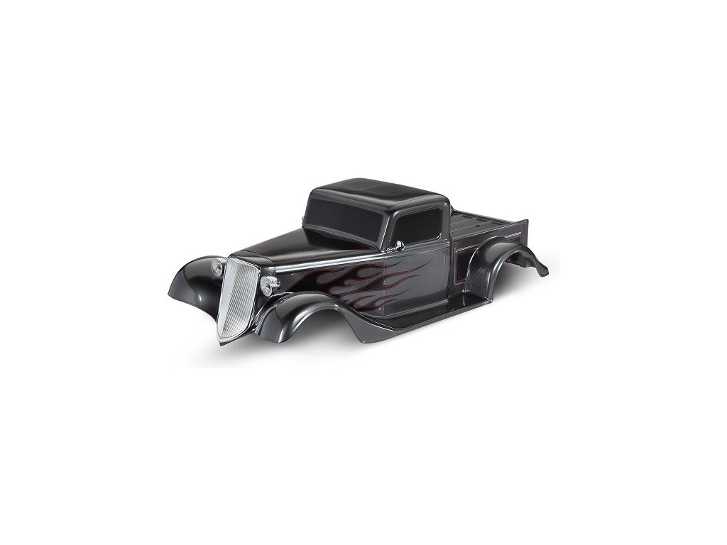 Traxxas karosérie Factory Five 35 Hot Rod Truck černá - kompletní karoserie s aplikovanými polepy. Obsahuje: přední mřížku, zrcátka, přední a zadní světlomety, pěnovou vložku.